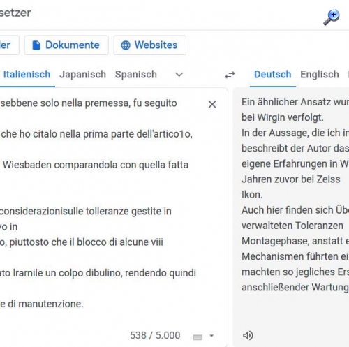 Der Betreiber hat allerdings seine Seite manipuliert, sodaß ein Copy & Paste in translate.google.de nicht so einfach möglich ist - kein Rechtsklick, kein Speichern, kein "Drucken" in ein PDF. Mein Italienisch ist leider etwas eingerostet und technisches Italienisch war sowieso nie drin. Mit einem kleinen Umweg kriegt man die Texte dennoch in einen Übersetzer: