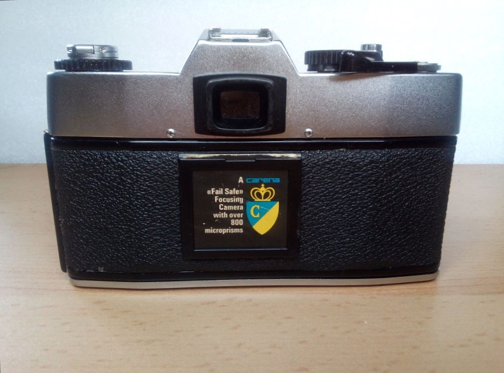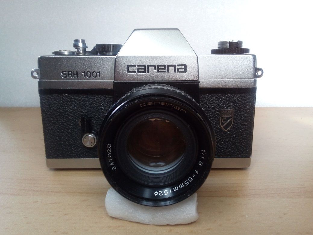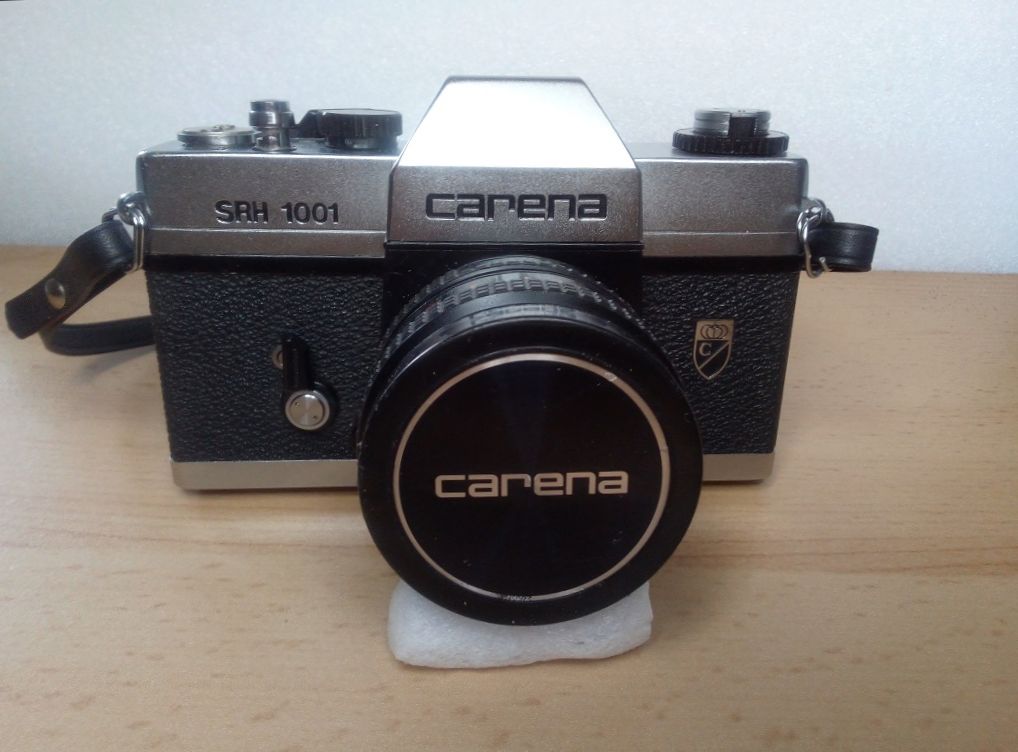 Hersteller / Vertrieb: PHOTO PORST, hergestellt in Japan Modell: Carena SRH 1001 Typ: KB-Spiegelreflexkamera, 24x36mm, max. 36 Aufnahmen, Blitzschuh und Selbstauslöser, gekuppelter Belichtungsmesser, Filmempfindlichkeit: 15 - 33 DIN oder 25 - 1600 ASA Seriennummer: 216007 Baujahr: 1978? Verschluß: Tuchverschluß, "B", 1 - 1/1000 sec., Blitz 1/60 sec. Blende: je nach Objektiv, Standardobjektiv 1,8 / 55 mit Blende 1,8 - 16 Optik (Standard): Carenar 1,8 / 55 Fokus: 0,6 m - unendlich