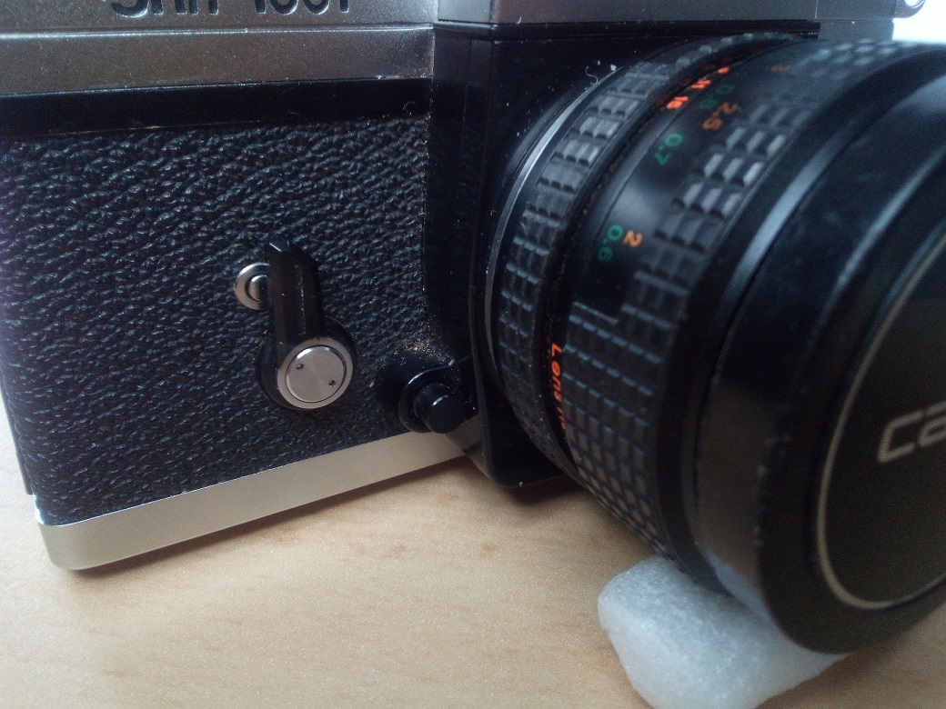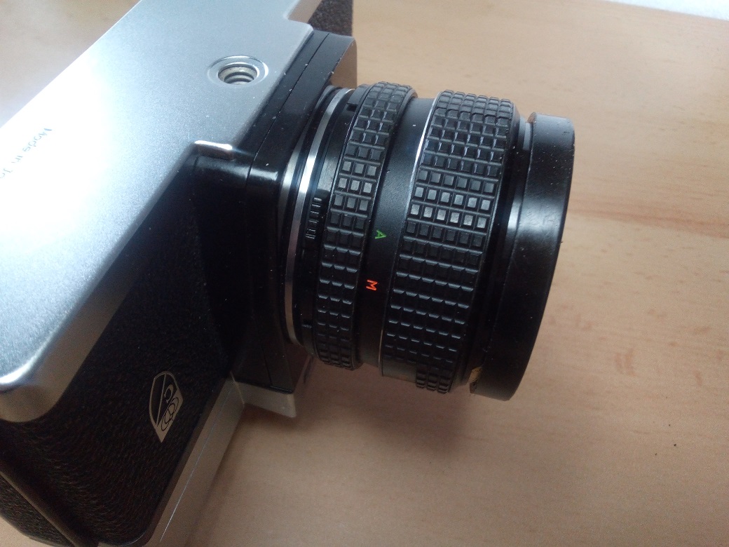 Meine Carena ist mit dem Standardobjektiv 1:1,8 / 55 ausgerüstet. Dank des M 42 Schraubgewindes können auch Objektive anderer Hersteller verwendet werden (das Angebot bei den bekannten Plattformen ist sehr groß). Das Standardobjektiv bietet einen manuellen und einen automatischen Modus für die Blende. Weiterhin verfügt die Kamera über einen gekuppelten Belichtungsmesser, der ursprünlich von einer 1,35 V Quecksilberbatterie mit Energie versorgt wurde. Diese Batterien sind heutzutage aber nicht mehr erhältlich. Alternativ lassen sich LR 44, allerdings mit 1,5 V, verwenden. Da der Belichtungsmesser keine Werte, es müssen nur 2 Symbole zur Deckung gebracht werden, liefert, ist es schwierig zu beurteilen ob die Messung mit der höheren Spannung korrekt ausgeführt wird (Rainer referierte bereits an anderer Stelle zu der Thematik).
