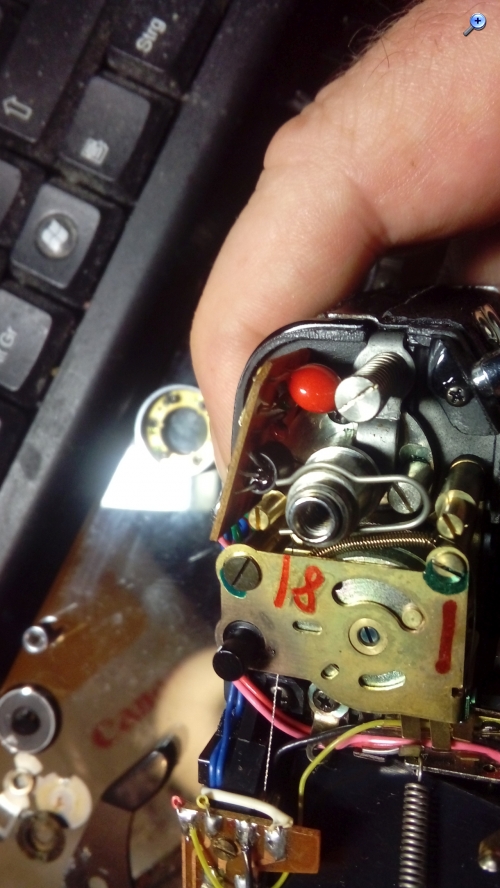 Oft sind die Schalterkontakte oxydiert, es kann hilfreich sein (was ich immer als erstes mache) die hier in Frage kommenden Schalter von DIN/ASA Einsteller, von der Messtaste 9, und von dem Blendenschalter A zumindest 30 mal zu schalten. Oft löst das durch Konkaktreibung um das Oxyd kurzzeitig zu verdrängen.