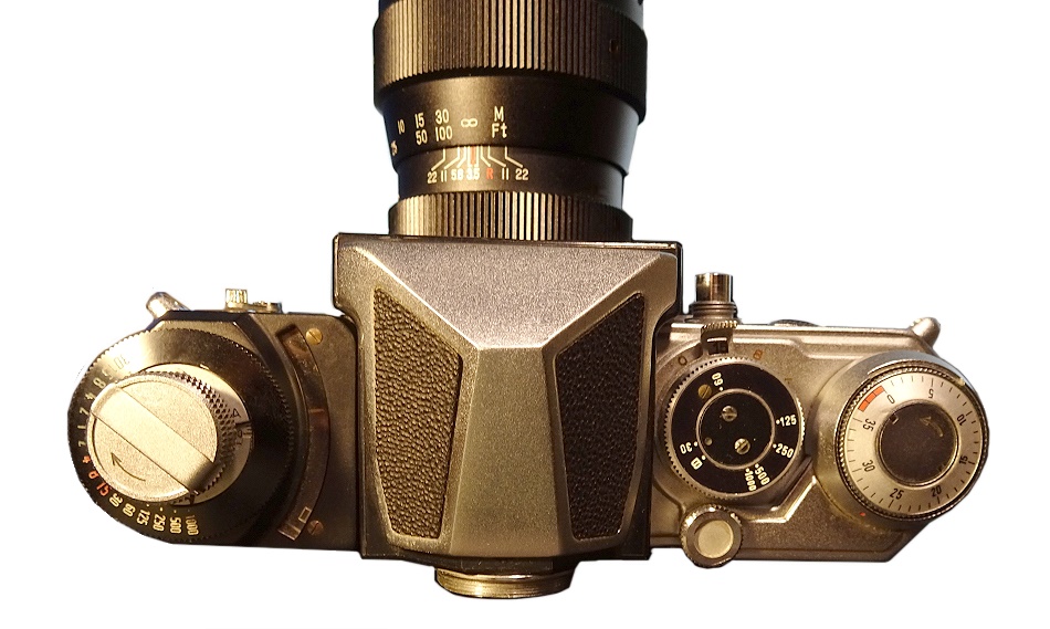 Das hier gezeigte Modell ist aus meiner Sicht hinsichtlich der Belichtungsmessung eine gewisse Fehlentwicklung. Warum? Weil zwar TTL-Messung, aber Ablesung des Messwertes nicht im Sucher, sondern nach Betrachtung des Zeigers auf der Geräte-Oberseite.