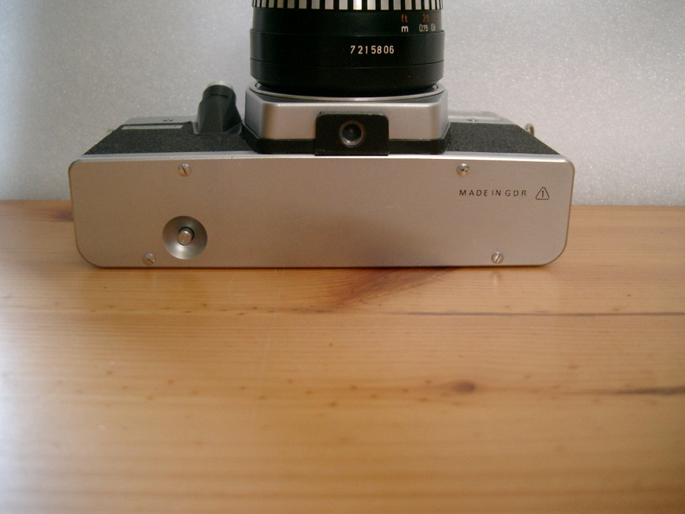 Hinter dem mitglieferten PENTAFLEX - COLOR 2,8/50 Objektiv verbirgt sich ein nur für den Export produziertes MEYER - DOMIPLAN automatic 2,8/50