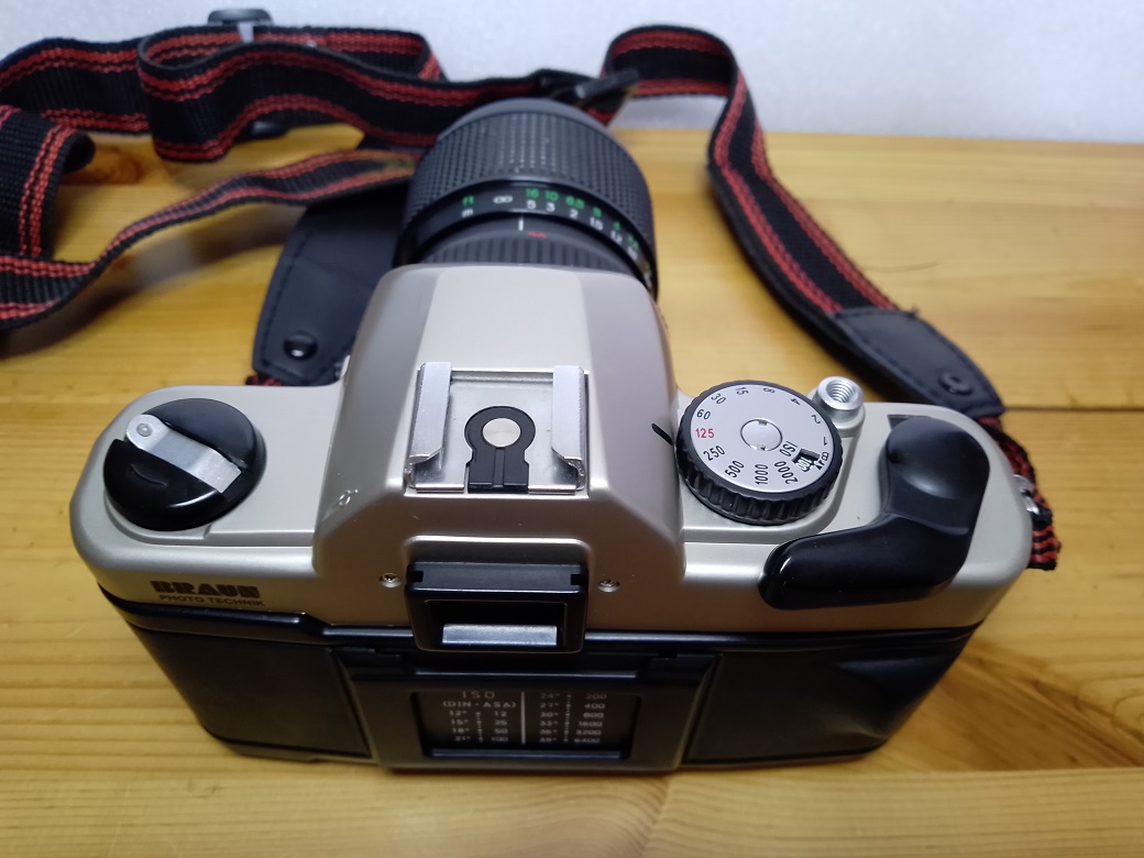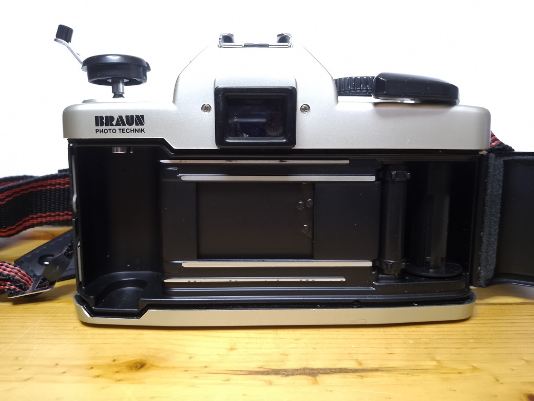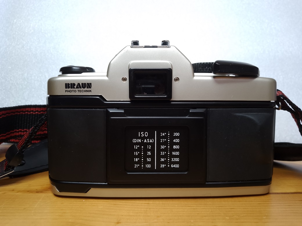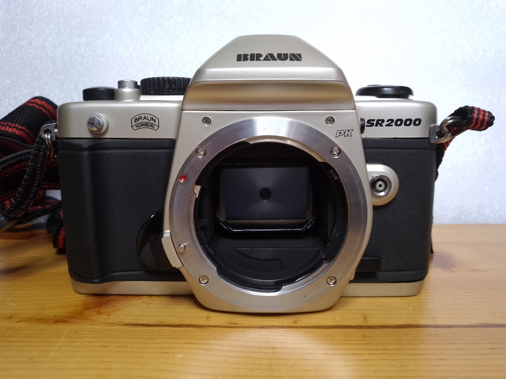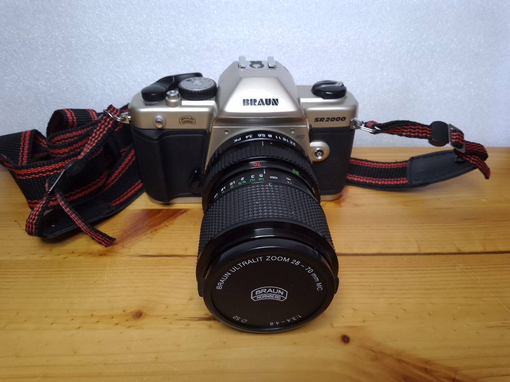 Vertrieb / Hersteller: BRAUN Photo Technik, Nürnberg / Jiangxi Optical Instrument General Factory (China) für Phenix (Taiwan) Modell: SR2000 PK Typ: KB SLR Kamera, 24x36 mm, TTL Belichtungsmessung, max. 36 Aufnahmen Baujahr: 1999 Seriennummer: 90803575 Verschluß: mechanischer, vertikal ablaufender Schlitzverschluß, "B", 1 - 1/2000 sec., X=1/125 sec, Selbstauslöser Objektiv (Standard): BRAUN ULTRALIT ZOOM 28 - 70 mm MC 1:3.4 - 4.8 Blenden: 3,4 - 22 Fokus: manuell 0,35 m (Makro) - unendlich Anschluß: PK-Bajonett Batterien für Belichtungsmesser: 2 x LR/SR 44 Batterien a 1,5 Volt Filmempfindlichkeit: 25 - 3200 ISO Gewicht (ohne Objektiv und Batterien): ca. 434 Gramm lt. Bedienungsanleitung