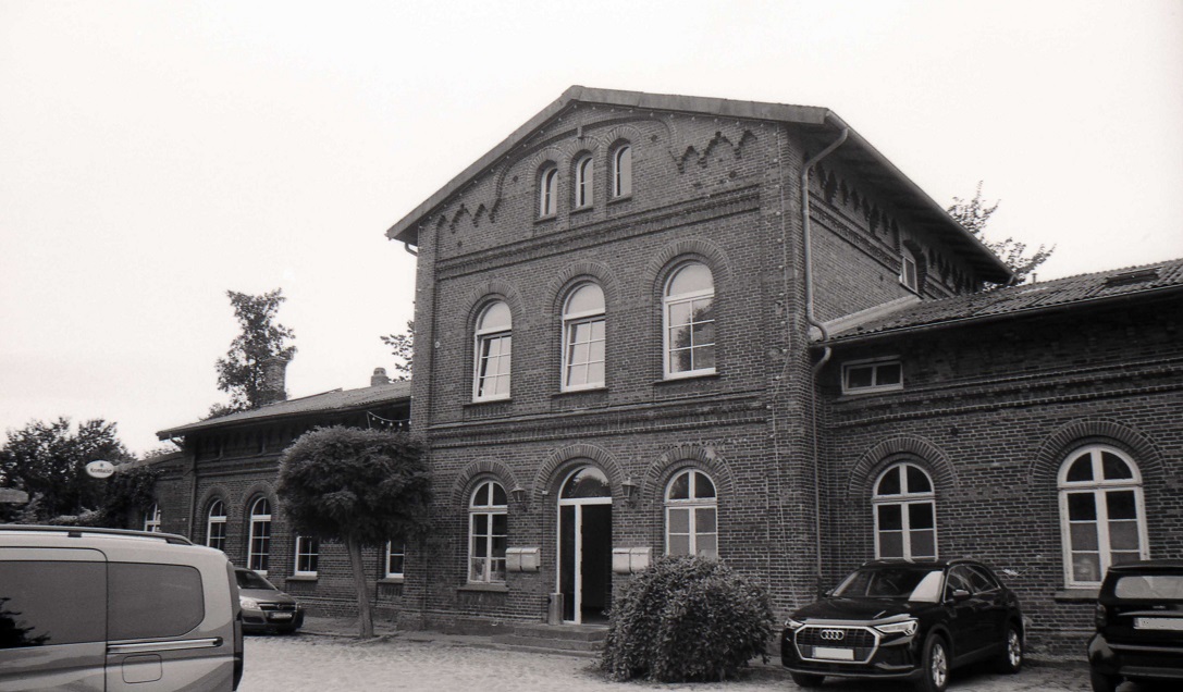 Das alte Bahnhofsgebäude in Friedrichstadt (heute ein griechisches Restaurant). Dort begann im Juli 1979, damals noch mit dem Sammeltransport aus dem Ruhrgebiet kommend, für mich das Abenteuer Bundeswehr. Von Friedrichstadt ging es noch einige Kilometer mit dem Bus in den damaligen Einödstandort Seeth.