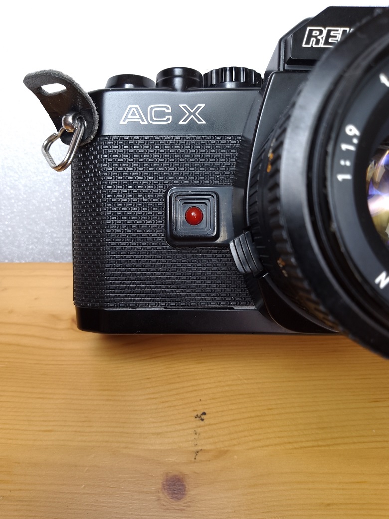 Tatsächlich nimmt die Revueflex AC X, eine umgezeichnete Chinon CA-4, dem Fotografen eine Menge Arbeit ab. Ein Blick auf das Drehrad, das bei vergleichbaren SLR´s verschiedene Verschlußzeitmöglichkeiten anbietet, läßt nur "AUTO", "X" und "B" erkennen. Manuell lässt sich nur die Blende wählen über die dann die eingebaute Elektronik stufenlos die entsprechende Verschlußzeit im Bereich von 1 sec. bis 1/1000 sec. einstellt. Die Lichtsituation wird über eine mittenbetonte TTL Offenblendenmessung ermittelt. Die von der Elektronik gewählten Verschlußzeiten werden dem Fotografen, ungefähr, über Leuchtdioden im Sucherfenster angezeigt. Diese Anzeige, im Prospekt etwas hochtrabend "Informationszentrum" genannt, warnt auch vor Über- bzw. Unterbelichtungen. Natürlich muß auch bei dieser Kamera vorher die richtige Filmempfindlichkeit eingestellt werden.