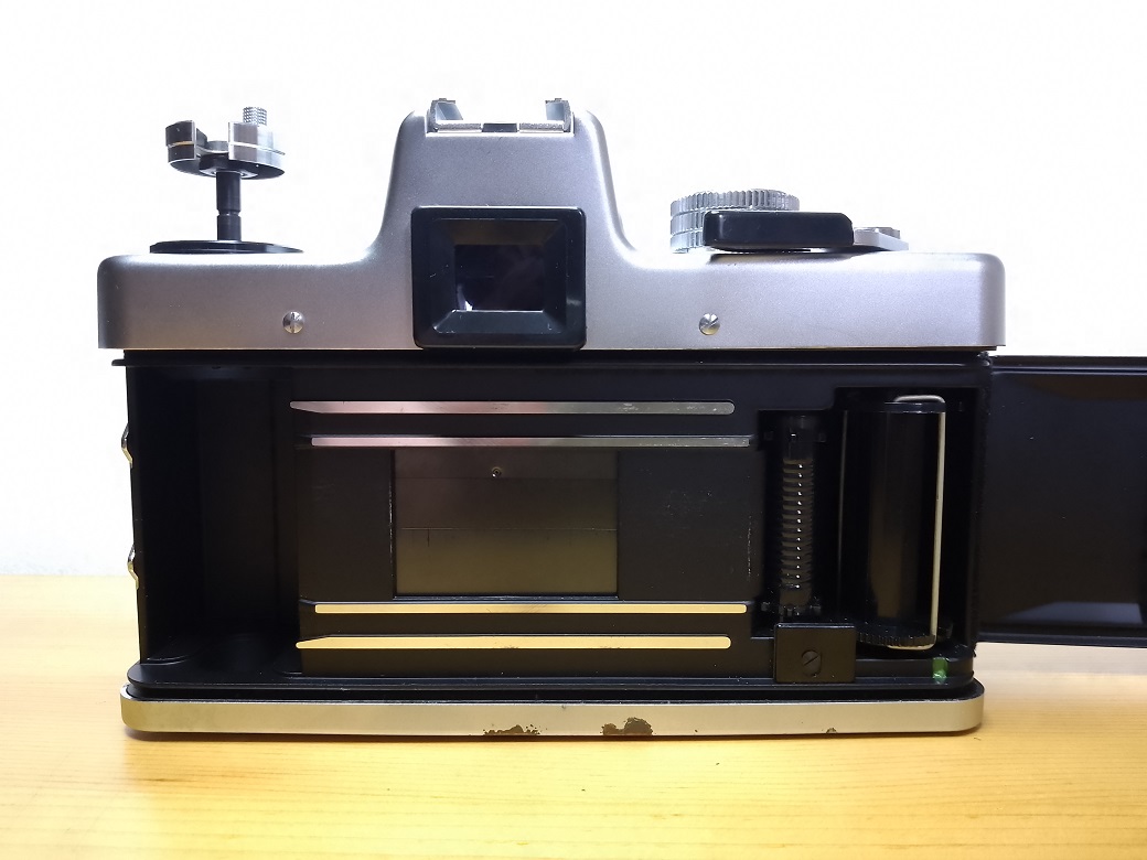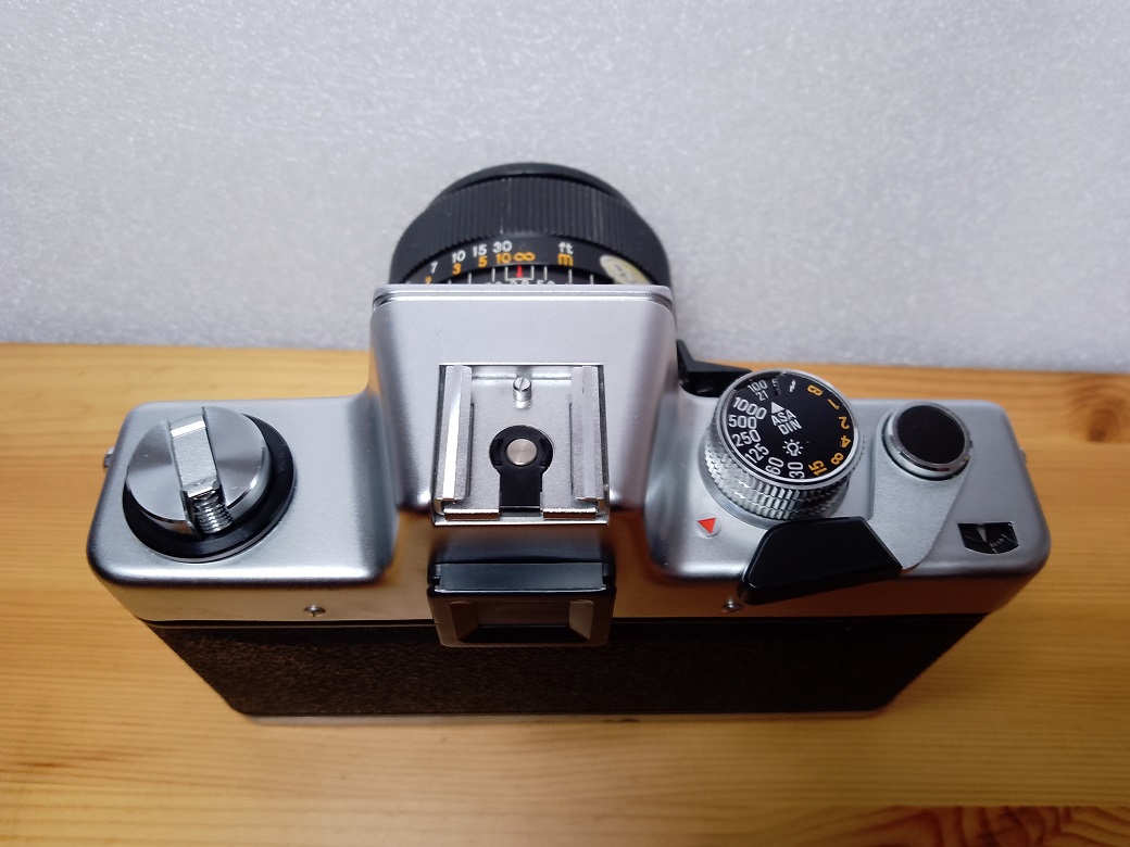 Nimmt man die Kamera zur Hand überrascht das doch verhältnismäßig hohe Gewicht. Mit dem hier montierten REVUENON-SPECIAL 1:2,8/35 mm Objektiv ermittelt meine Haushaltswaage knapp 1000 Gramm Gewicht.
