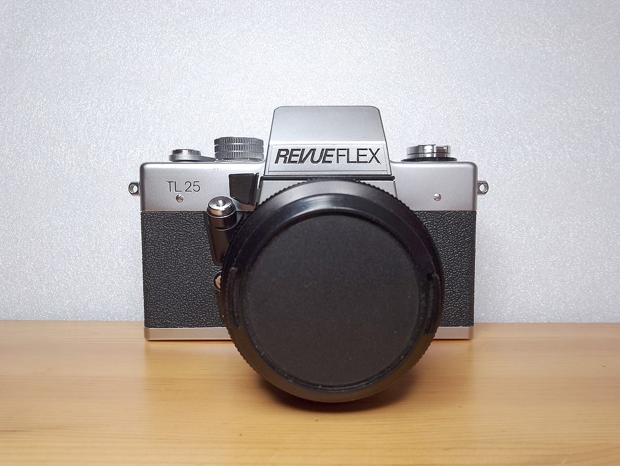 Vertrieb / Hersteller: FOTO-QUELLE (Revue), Nürnberg / VEB PENTACON, Dresden (ehem. DDR) Modell: Revueflex TL 25 / PRAKTICA MTL 5 Typ: KB-SLR Kamera mit TTL Belichtungsmessung, 24 x 36 mm, max. 36 Aufnahmen Baujahr: 1981 - 1983 Seriennummer: 924542 Verschluß: mech. Metallschlitzverschluss, "B", 1 - 1/1000 sec, Vorlaufwerk (10 sec) Blenden: je nach Objektiv Fokussierung: manuell Filmempfindlichkeit: 12 - 33 DIN (12 -1600 ISO) Stromversorgung: PX 625 (nicht mehr erhältlich)
