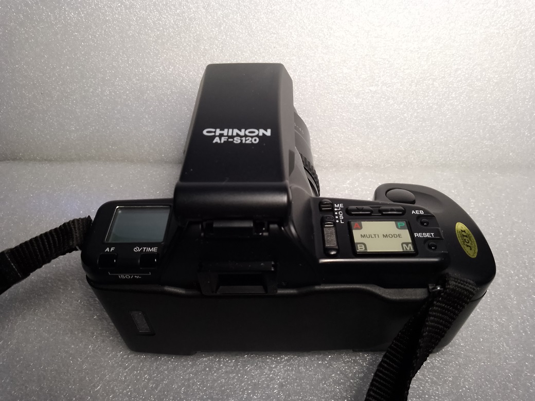 Hersteller: Chinon, Japan Modell: CP-9AF Multi-Program Baujahr: 1988 Typ: KB-SLR, 24x36 mm, mit Programmautomatik und Autofokus, automatischer und manueller Belichtungssteuerung, TTL-Belichtungsmessung und automatischem Filmtransport, Einzelbild oder Serienschaltung bis 2,5 Bilder/sec Verschluß: elektronischer Schlitzverschluß, 15 - 1/2000 sec, Langzeitbelichtung bis 90 Minuten möglich Blenden: je nach Objektiv Fokussierung: manuell Seriennummer: 301434 Filmempfindlichkeit: 25 - 5000 ISO, über DX-Kontakt oder manuell einstellbar Stromversorgung: 4 x 1,5 Volt AA oder 1 x 6 Volt 2CR5