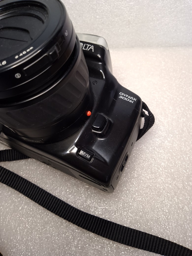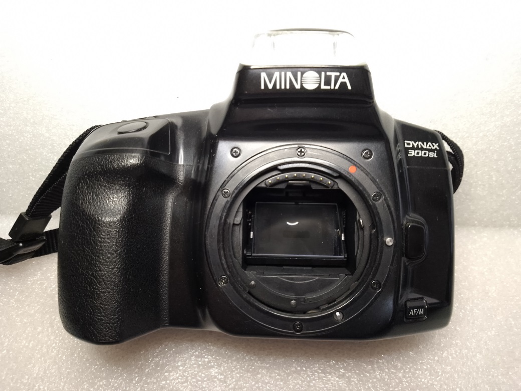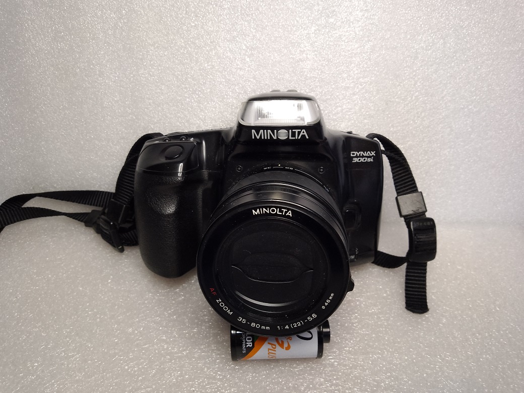 Hersteller: Minolta CO, LTD, Osaka Japan Modell: Minolta Dynax 300si Typ: KB-SLR Kamera mit Programmautomatik und Zusatzmodi, 24 x 36 mm, max. 36 Aufnahmen Baujahr: ab 1995 Seriennummer: 01609729 Bajonett: Minolta AF (Kunststoff) Verschluß: Lamellen Schlitzverschluß, 30 - 1/2000 Sek. X = 1/90 Sek., elektronischer Selbstauslöser mit 10 Sek. Vorlaufzeit Blenden: je nach Objektiv Fokussierung: AF (abschaltbar) Filmempfindlichkeit (mit DX-Code): ISO 25 bis ISO 5.000, ohne DX-Code wird ISO 100 eingestellt Stromversorgung: Lithiumbatterie 2CR5 6 Volt Gewicht (ohne Objektiv): 380 Gramm Neupreis mit 35 - 70 Standardobjektiv: ca. 500,-- DM
