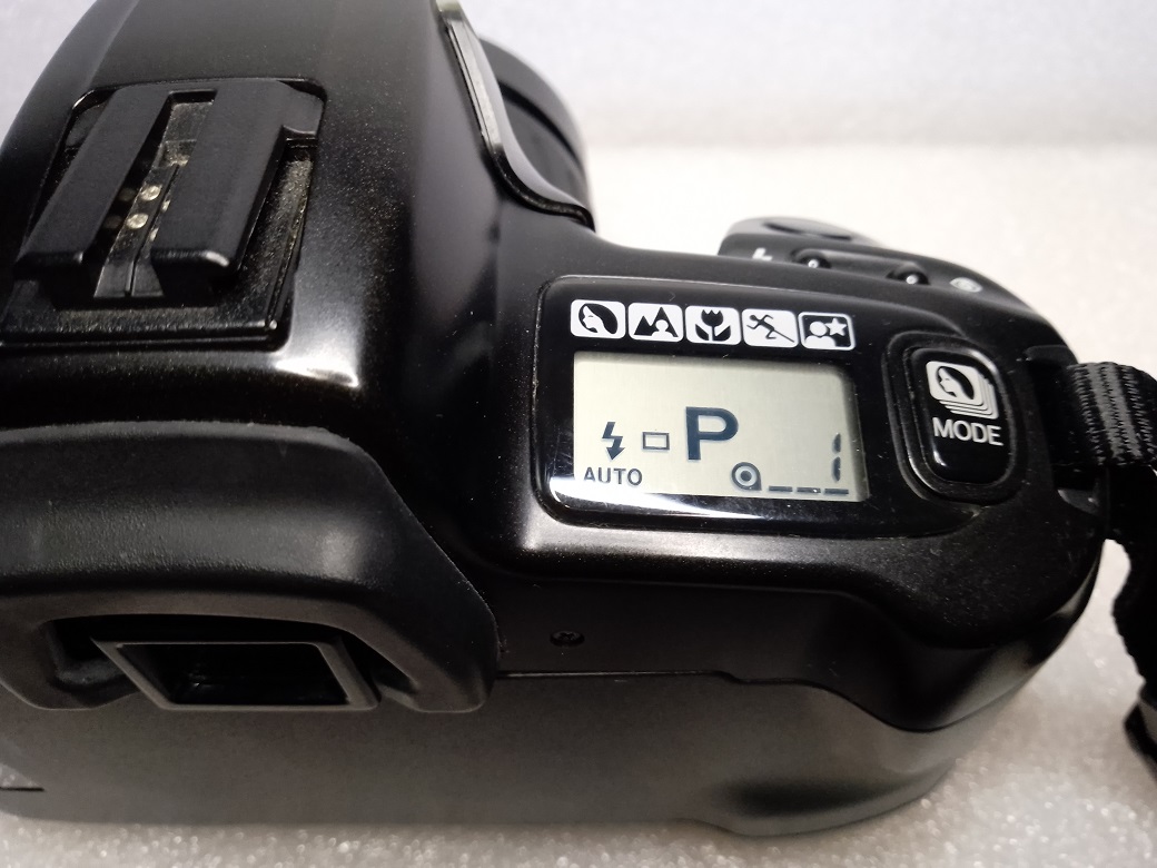 Schaltet man die Kamera ein befindet sie sich in einer Programmautomatik die wahrscheinlich über 90% der Anwendungsbereiche abdeckt. Nachdem über DX-Kontakte die Empfindlichkeit des eingelegten Filmes eingestellt worden ist (bei Filmen ohne DX-Code wird ISO 100 gewählt) ermittelt die Elektronik welche Blende und Verschlußzeit für ein gelungenes Foto zu verwenden ist. Dazu ist der Auslöser halb herunterzudrücken. Bei dieser Gelegenheit stellt der Autofokus auf das im Fokussierrahmen befindliche "Ziel" scharf. Ein AF-Hilfslicht (Reichweite 1 - 5 Meter) kann dabei unterstützen. Wenn gewünscht besteht die Möglichkeit mittels eines Schalters auf der Vorderseite den Autofokus zu deaktivieren. Außerdem prüft die Kamera, ob die Lichtverhältnisse den Einsatz des eingebauten Blitzes oder eines evtl. aufgesteckten Systemblitzes erfordern. Zusätzlich besitzt die Kamera über eine Funktion zur "Rote Augen" Reduzierung.