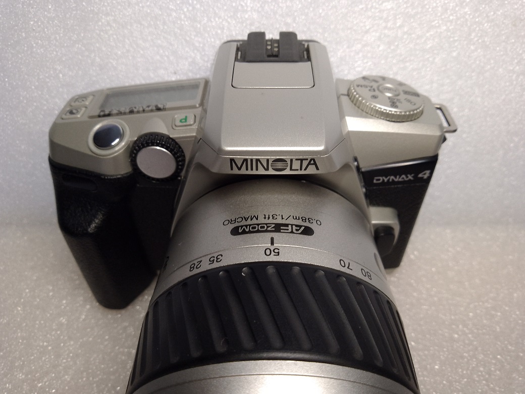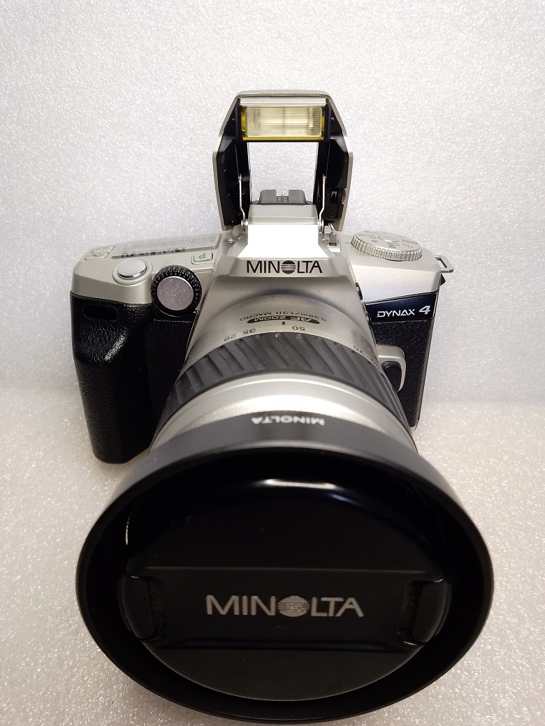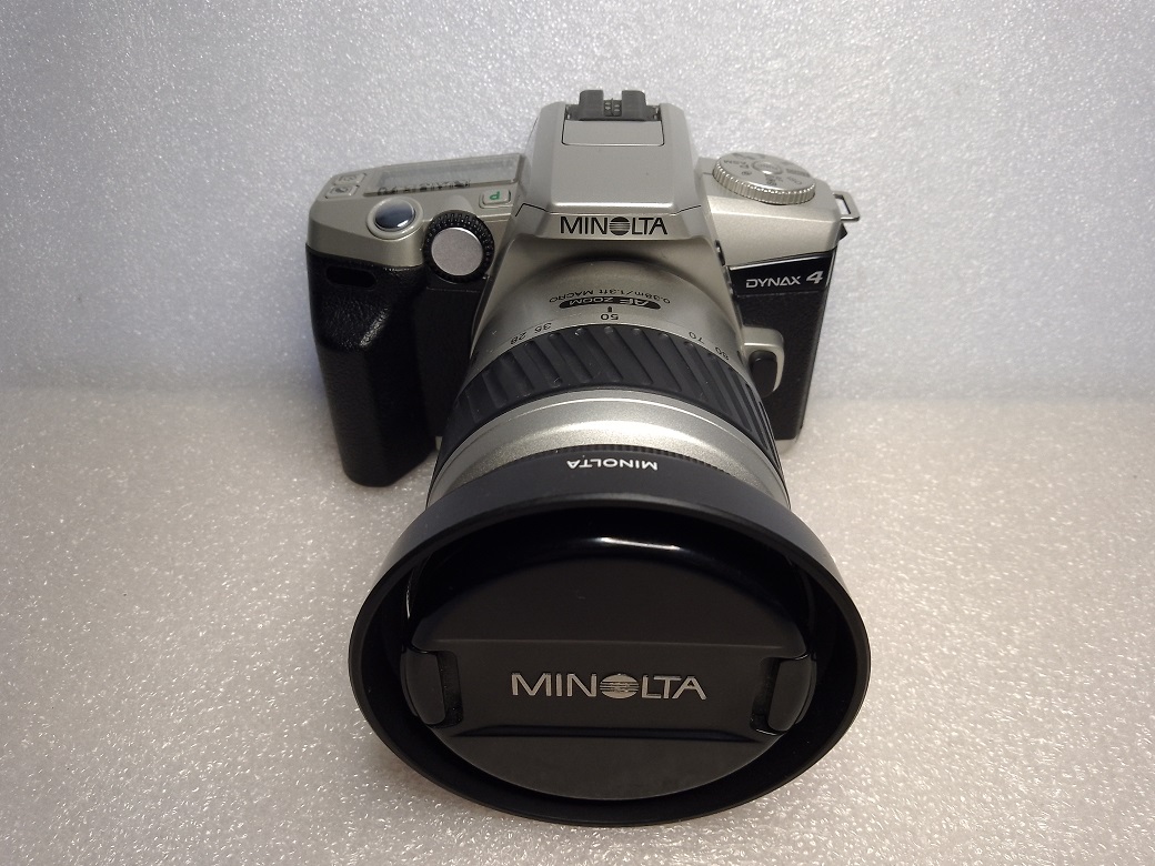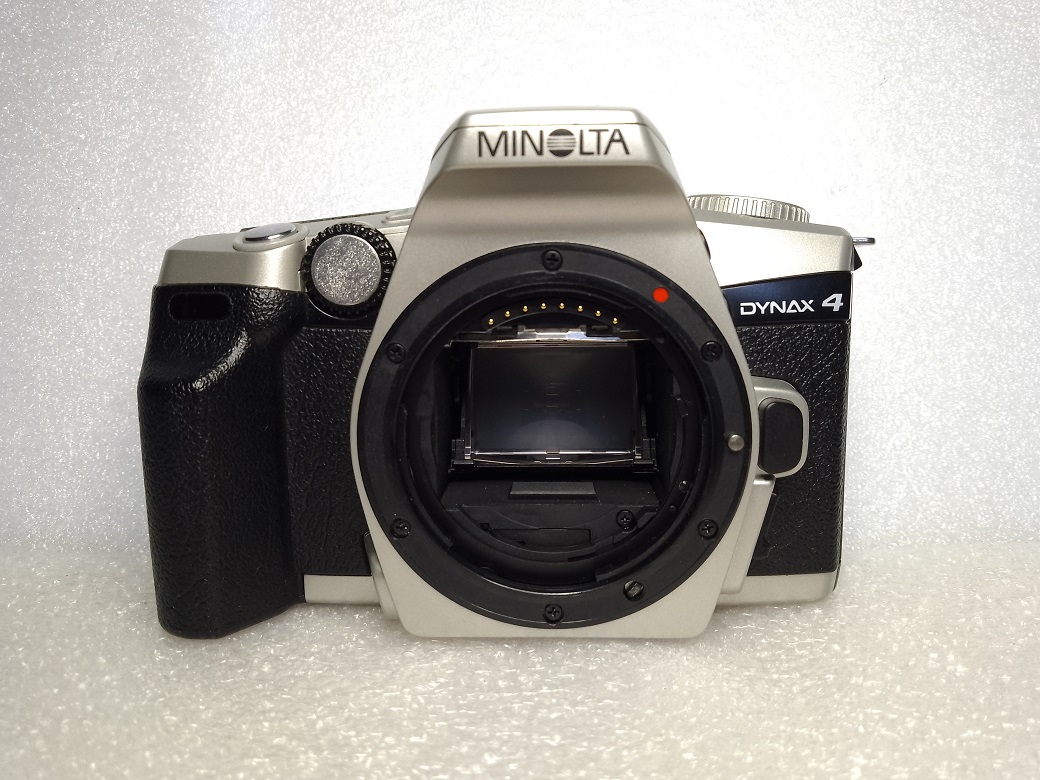 die Minolta Dynax 4 (in Nordamerika Maxxum 4, in Japan und im pazifischen Raum Dynax 3) stammt ebenfalls aus der Endzeit der analogen Kamerafertigung bei Minolta und kam 2002 auf den Markt. Auch diese SLR besteht fast vollständig aus Kunststoff und ist dementsprechend ohne Batterien und Objektiv ca. 315 Gramm leicht.