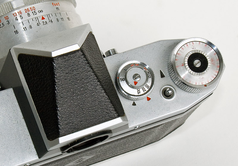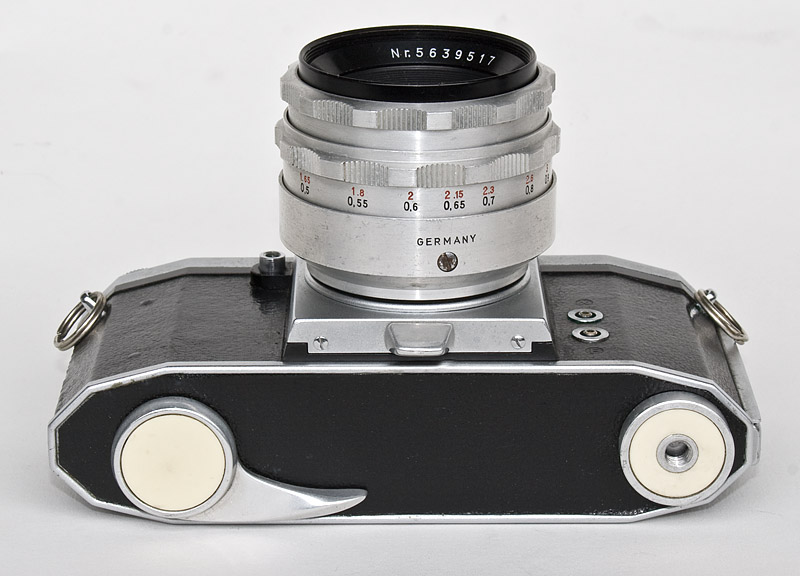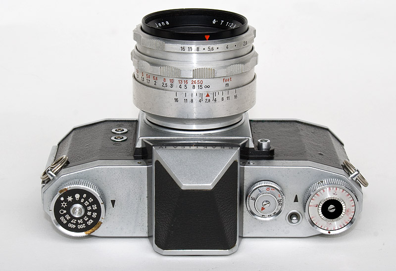 Objektiv: Jena T, 1:2,8 / 50 mm, mit manueller Springblende, Entfernungseinstellung 0,5 m - unendlich, Blende 2,8 - 16, Tiefenschärfeanzeige