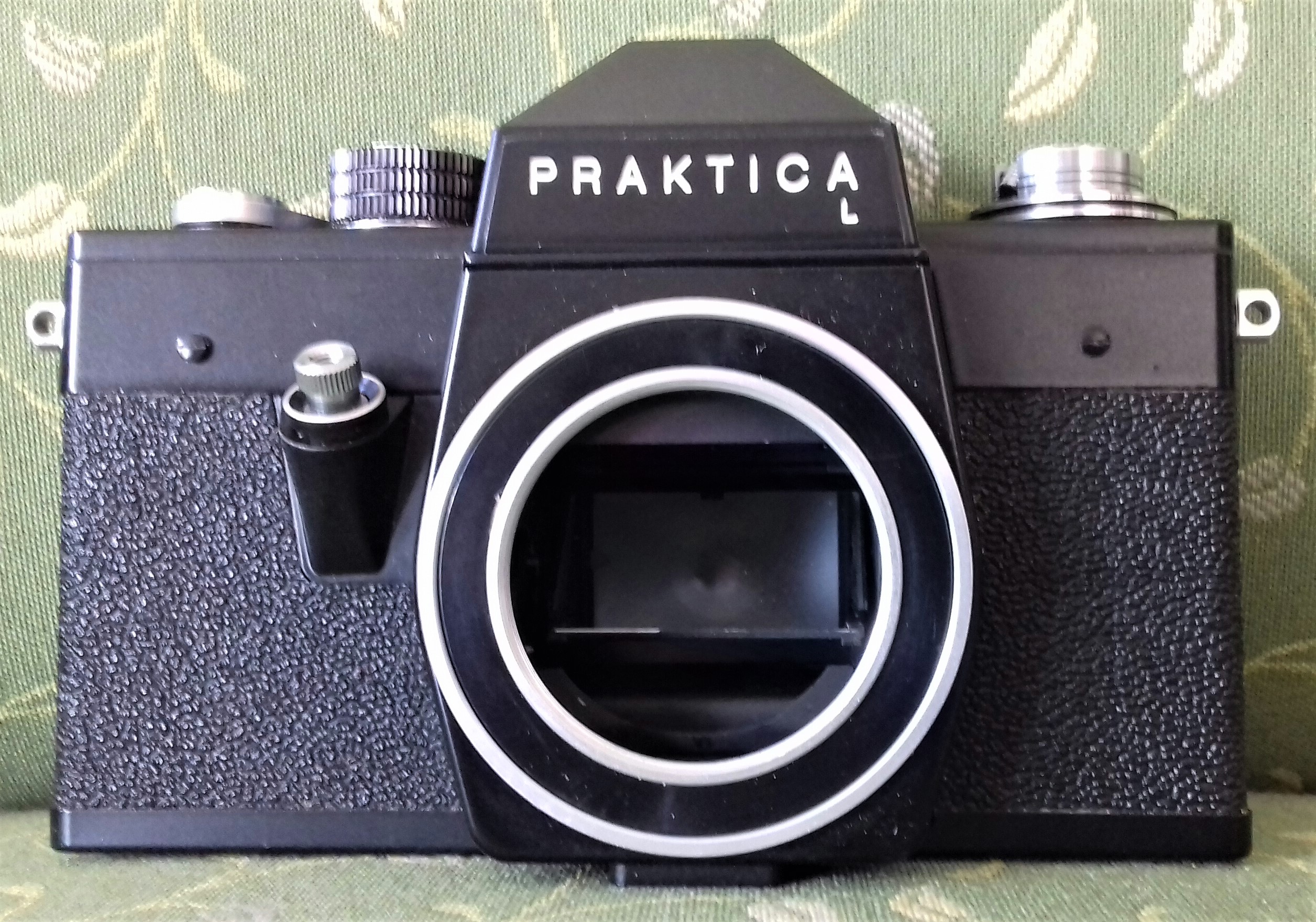 Hallo, die Praktica L 2 war meine erste Spiegelreflexkamera, die ich mir als Student mit 160 M Stip geleistet habe. Es gab sie mit mindestens drei verschiednen Objektivvarianten. Domiplan, Pentacon und Zeiss. Hier mal ein Exemplar mit einem Tessar 2,8/50mm von Zeiss Jena.Die L-Reihe begründete eine neue, sehr erfolgreiche und umfangreiche Serie der Prakticas in den 70igern und 80gern. Neu war der Metalllamellenverschluss und die "automatische Filmfangspule" - siehe Innenansicht rechts. Man brauchte den Filmanfang nur bis an das Klötzchen unten legen, die Kamera schließen und zweimal spannen und auslösen- fertig. Der L-Reihe fehlte noch jede Art von Belichtungsmessung - die kam dann in den folgenden Modellen MTL, DTL super TL , PLC, VLC usw.