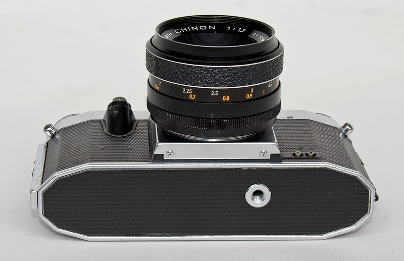 Sonstiges: Stativgewinde 1/4", Filmmerkscheibe im Rückspulknopf und im Schnellspannhebel, Ösen für Tragriemen, Auslöser schräg am Gehäuse angesetzt