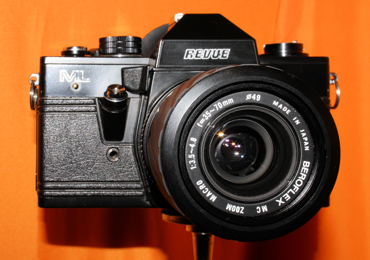 wenn man es ganz genau nehmen will ist die hier vorgestellte Revue ML eine Praktica MTL 5B, da ohne zusätzliche Blitzbuchse und schon für 1,5 Volt Batterien vorgesehen.