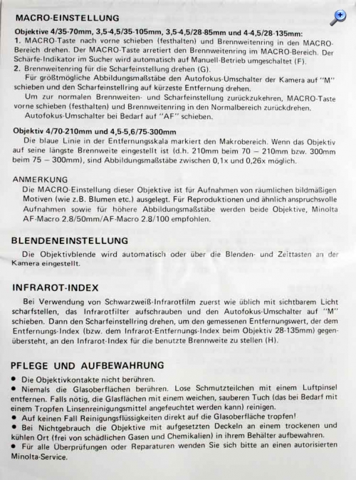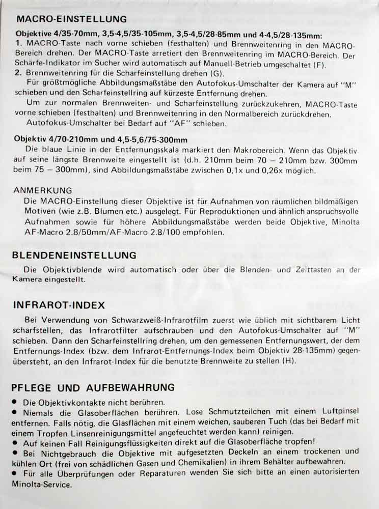 Was mir noch fehlt, ist eine Beschreibung des Objektives, AF Lens 35-105.