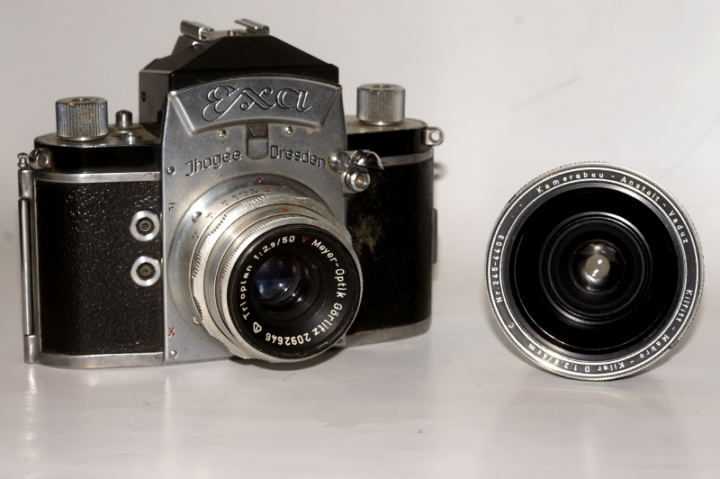 ich bin erst seit heute hier und habe mich mal ein wenig umgesehen. Da ich auch eine umfangreiche Sammlung analoger Kameras , mit dem Schwerpunkt auf Exa, Exakta und Praktica hab ich mich hierzu mal besonders informiert. Zur oben abgebildeten Exa 0, die auch in meinem Besitz ist, hätte ich noch Bilder eines Modelles mit Lichtschacht. Die Bilder sind von mir fotografiert, das Urheberrecht liegt bei mir. (in Metadaten vermerkt) Außerdem hätte ich auch Bilder der Exakta Varex II und der baugleichen Export-Variante Elbaflex VX 1000, sowie der Exa 1B und der Exa 500 incl. verschiedener Objektive. Bei Interesse könnte ich sie hier vorstellen