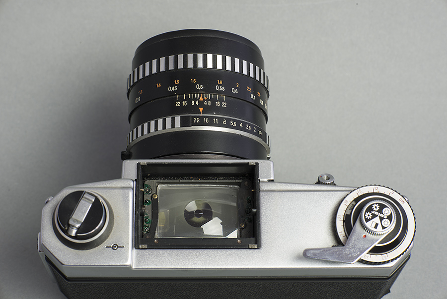 Es gab wechselbare Suchersysteme wie TTL-Prisma, Lichtschacht u.a.. Die Blenden- und Zeitwerte werden z.B.vom Objektiv und von der Zeitscheibe im TTL-Prisma eingespiegelt.