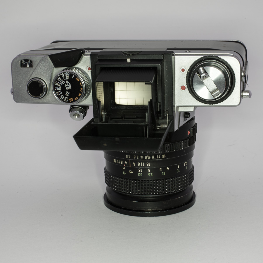 Diese Kamera war ab Ende der siebziger gut 10 Jahre mein "Leibkamera" und in fast täglichem Gebrauch. Man sieht es ihr auch an. Mein Vater hatte sie anschafft und ich konnte sie bei ihm gegen eine Praktica PLC 3 eintauschen, die technisch identisch ist, nur nicht über die Möglichkeit der Wechselsucher verfügt.