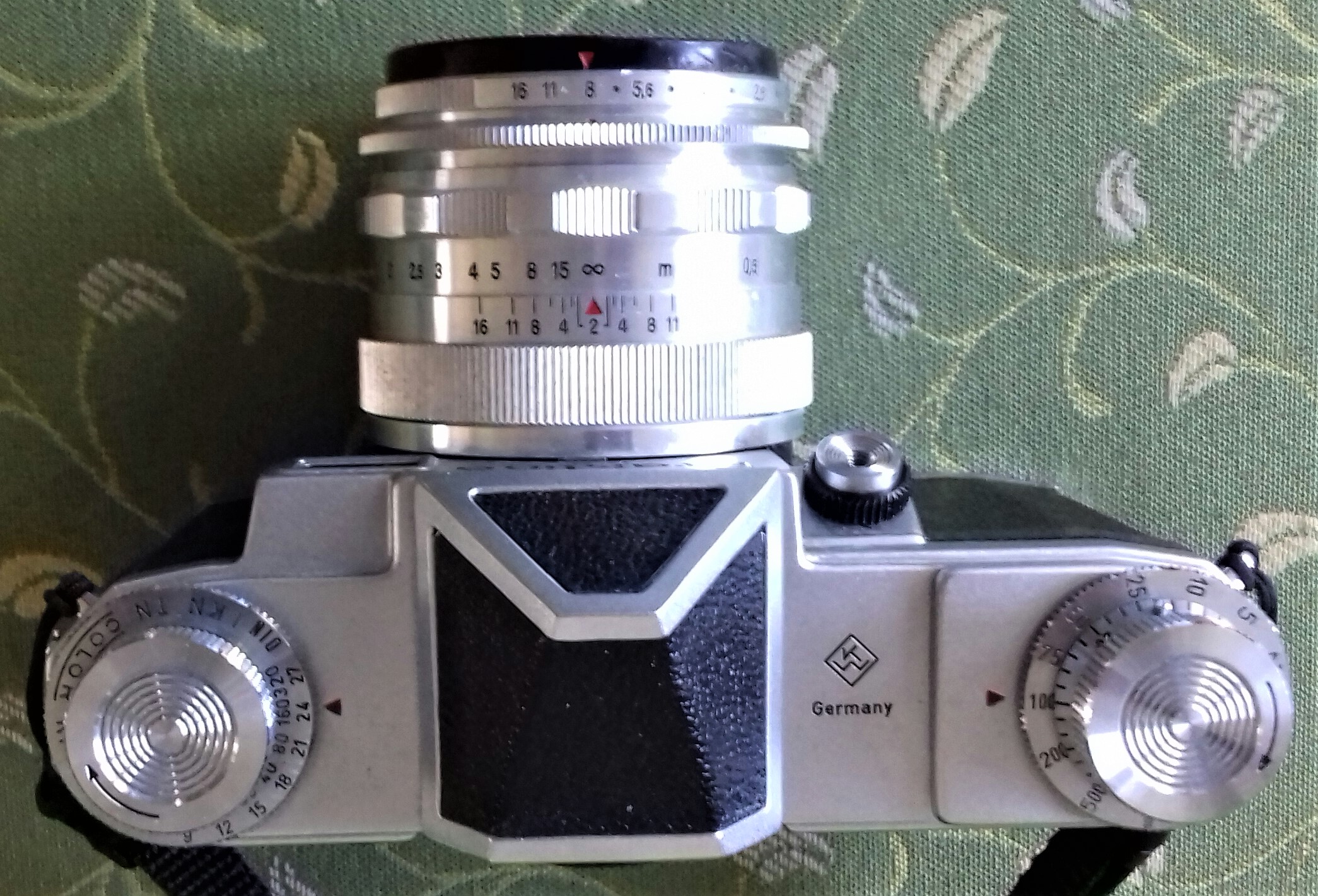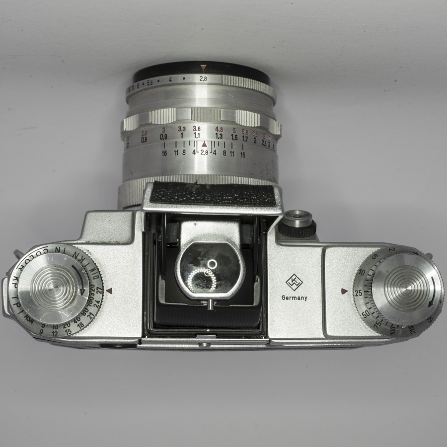 Die Filmempfindlichkeit konnte an einer Merkscheibe mit DIN und ASA Gravur links unter dem Rückspulknopf eingestellt werden.