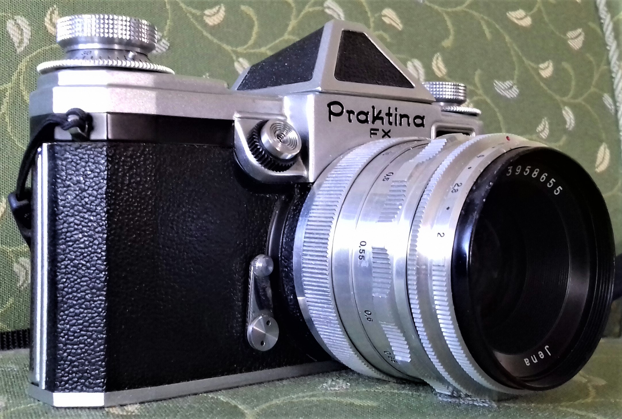 Baujahr dieser Kamera verm. 1955, Produktionszeitraum 1952 bis 1960 Hergestellt wurde die Kamera in den Kamerawerken Niedersedlitz bei Dresden. Die Praktina FX war eine der ersten Systemkameras weltweit. Es gab umfangreiches Zubehör wie eine Rückwand mit 17m Filmspulen, einen Stereovorsatz, den entsprechenden Stereosucher, Wechselsucher, austauschbare Einstellscheiben, einen Federmotor, einen Elektromotor mit Magnetauslöser und Wechselobjektive. Leider besitze ich nichts von diesen tollen Teilen.