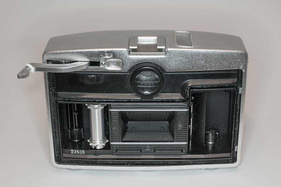 Da die Kamera für Wechselobjektive mit Bajonettanschluß konstruiert war, lag der Verschluss hinter den Linsen im Gehäuse. Dadurch bedingt, konnten aber keine Objektive mit längeren Brennweiten als 135mm verwendet werden.