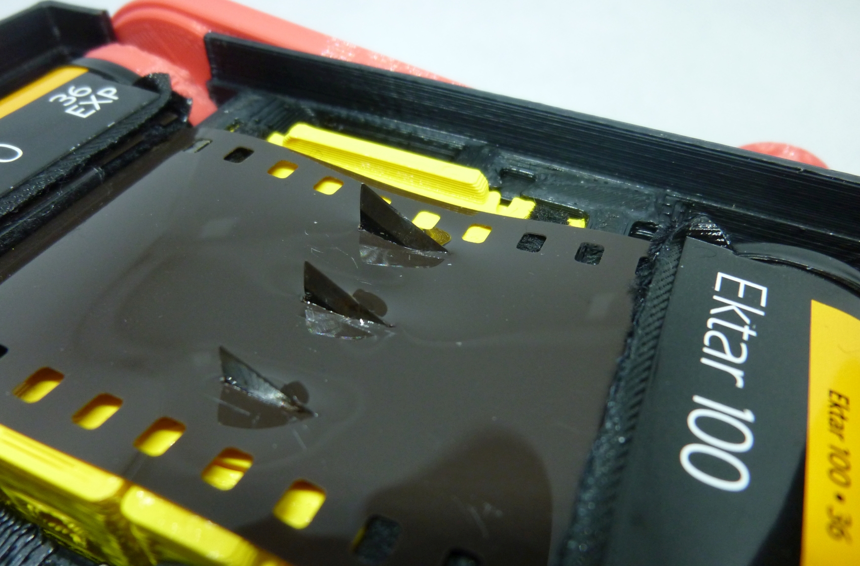 Edixa wegen der dort vorgesehenen Filmaufnahmespule. Der neue Fim kommt mit einer Einzelpatrone, an der der Film herausgezogen und an der Aufnahmespule befestigt werden muss. Vor dem Herausnehmen des belichteten Films muss der Film zurückgespult werden. Vorteilhaft ist lediglich, dass sich das Bildzählwerk beim Öffnen des Gehäuses automatisch zurücksetzt.