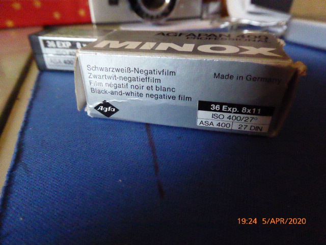 Scannerhannes:Auf jeden Fall Bilder machen! Irgendwas ist immer drauf zu sehen :) . Disclaimer: den von Dir genannten Minox-Film kenne ich nicht. Ich halte es auch nicht für sehr sinnvoll, den Film zu "verbrauchen", wenn nicht eine minox-gerechte Feinstkornentwicklung gewährleistet ist, gerade ein 400er.