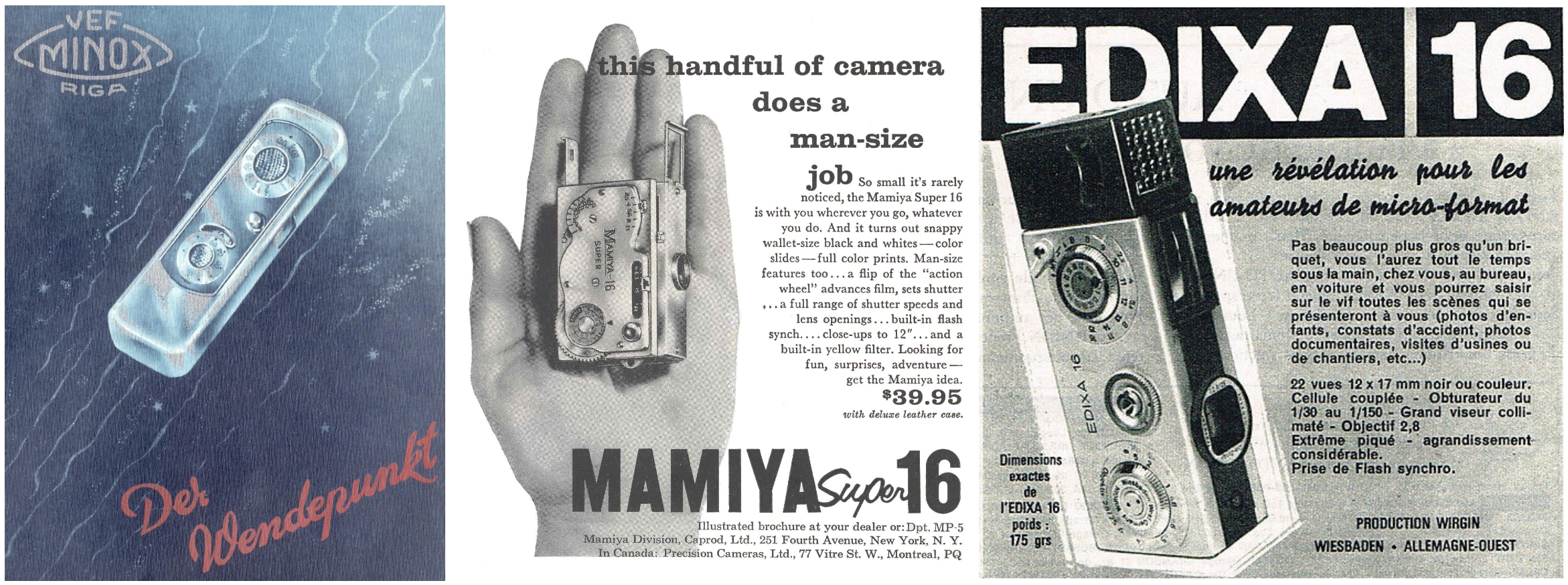 Walter Zapp - Der Visionär ordnet alles kompromisslos seiner Idee von der kleinstmöglichen Kamera mit hoher Bildqualität unter. Ganz folgerichtig muss dazu alles mit maximaler Präzision und Perfektion ausgeführt sein. Details wie z. B. der gleichbleibende Abstand der Negative auf dem (unperforierten) Film, der von der Entfernungseinstellung geschwenkte Sucher und das abgerundete Gehäuse ohne abstehende Teile, dass Sucher und Objektiv staubdicht schützt sind für ihn nicht verhandelbar.