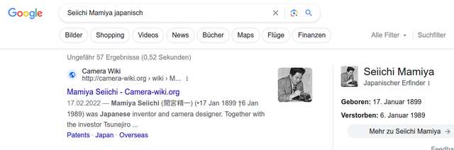Ich habe das mal getestet. Eine allgemeine Suche nach "Seiichi Mamiya japanisch", wobei das Suchwort "japanisch" wahrscheinlich überflüssig war,
