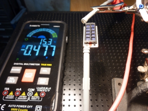 Die Leerlaufspannung EINER Siliziumzelle lag so um 0,5 bis 0,7 Volt, bei Selen um ca. 0,2 Volt darunter. Mit einem sehr hochohmigen ( größer als 100 kOhm /Volt) Voltmeter könnte man bei starken Lichteinfall das mal nachprüfen, wenn kein Messwerk des Belichtungsmesser angeschlossen ist.