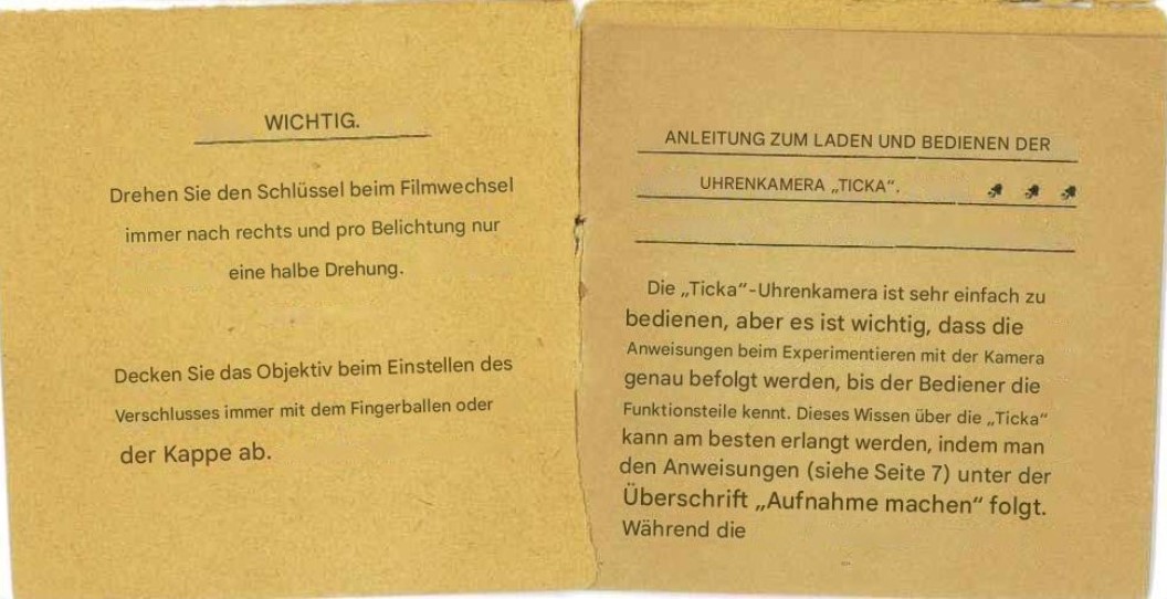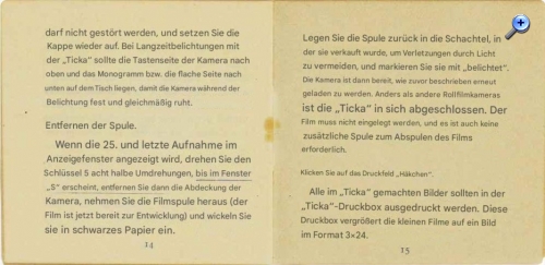 hier mal noch ein paar Infos aus dem WEB zur Ticka. Die Taschenurkamera wurde an 14.10.1903 von Magnus Niell/New York zum Patent angemeldet und am 6.9.1904 patentiert. Magnus Niell (Nilsson, 16.6.1872 – 29.3.1962) selbst wurde in Hurva in Skåne/Schweden, geboren. Er begann sein Ingenieursstudium in Stockholm und setzte es an der Friedrichs-Polytechnikum in Köthen/Deutschland bis zum Ingenieursabschluss fort. Während seiner Zeit als Erfinder soll er über fünfzig Kameras konstruiert haben (u.a. die bekannte Lopa). Zusammen mit einem niederländischen Schulkameraden gründete er die Firma Niell & Simons.