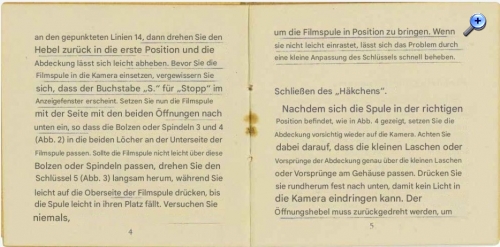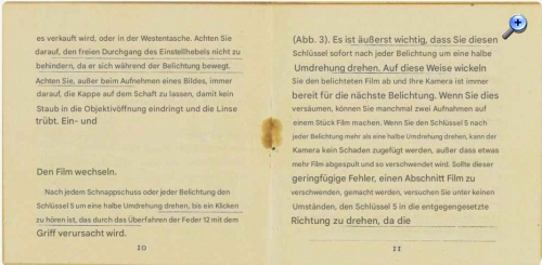Um den Film auf dem Spulenkern vor Licht zu schützen, wurde ans Filmende ein vorbereitetes Stück Rollfilm-Schutzpapier befestigt. Das Papier ist etwas breiter als der Film – 18 mm was der Breite des Spulenkerns entspricht: