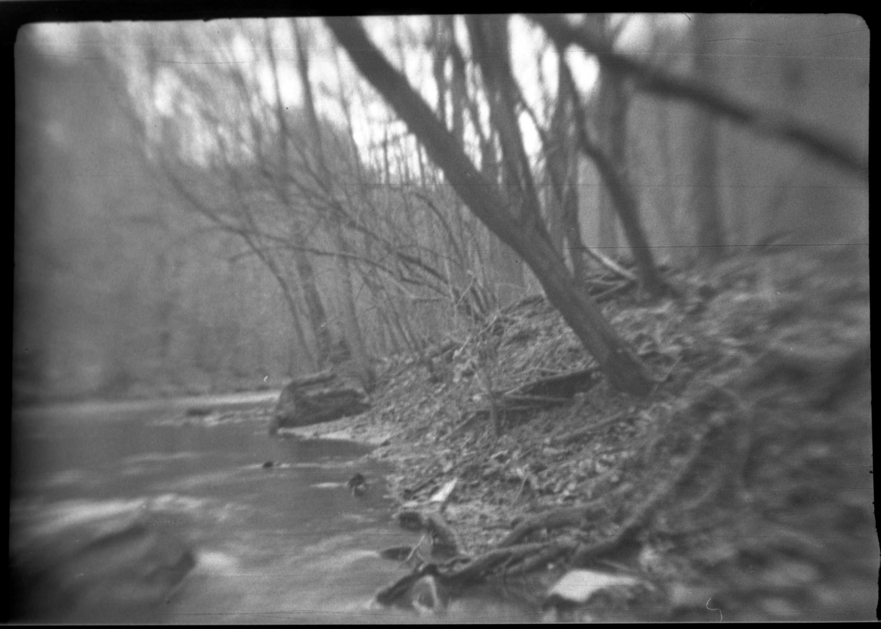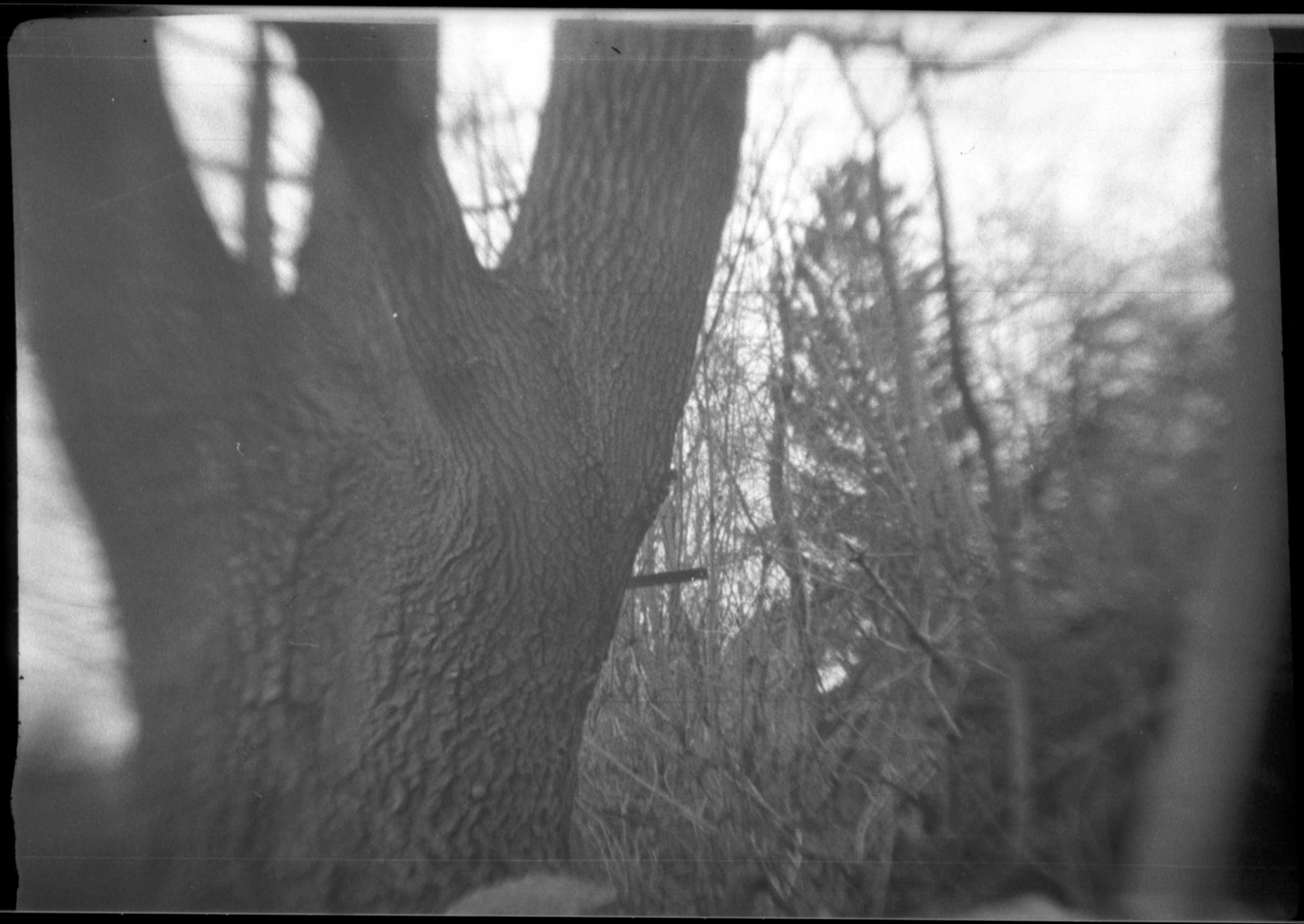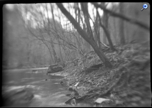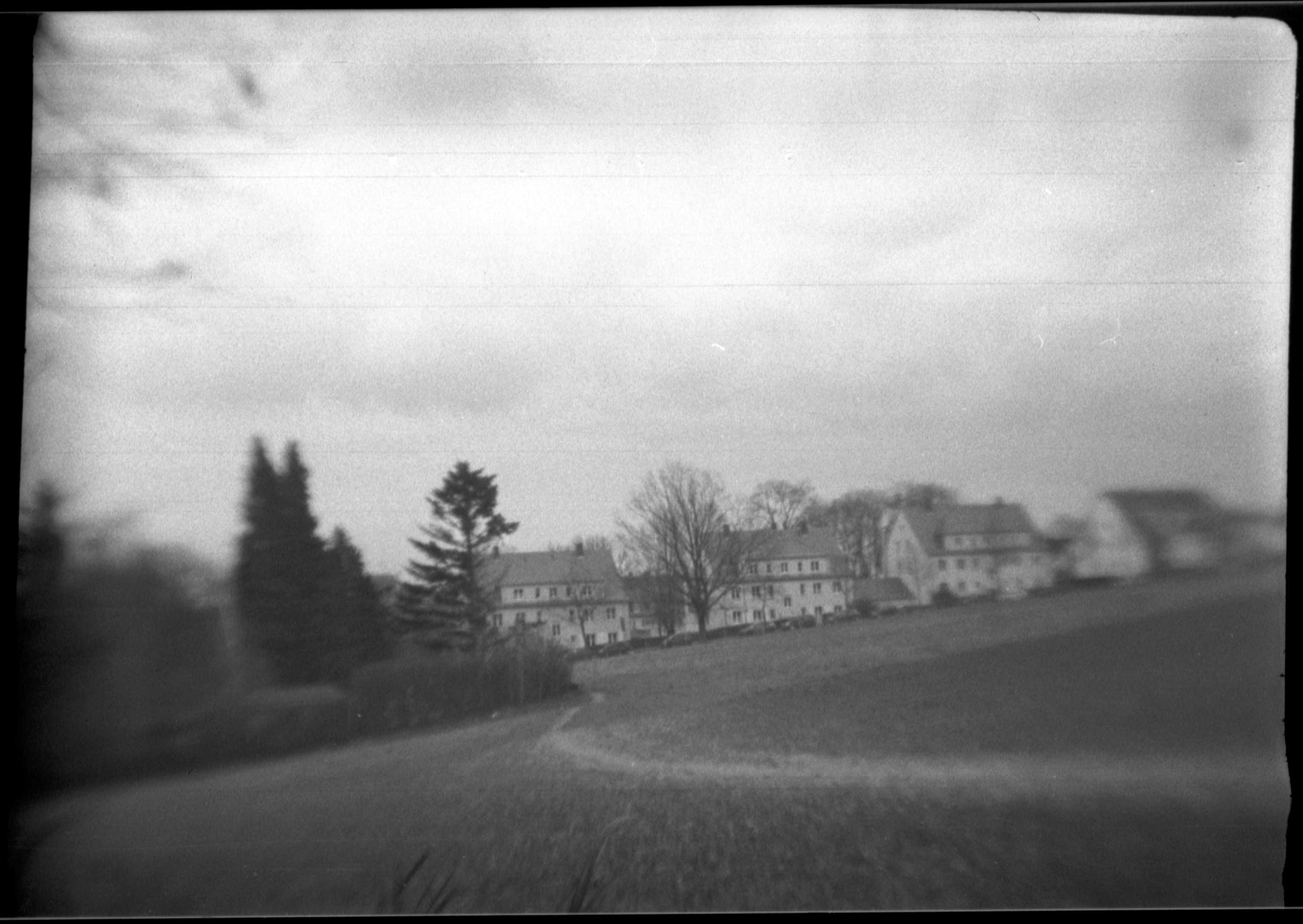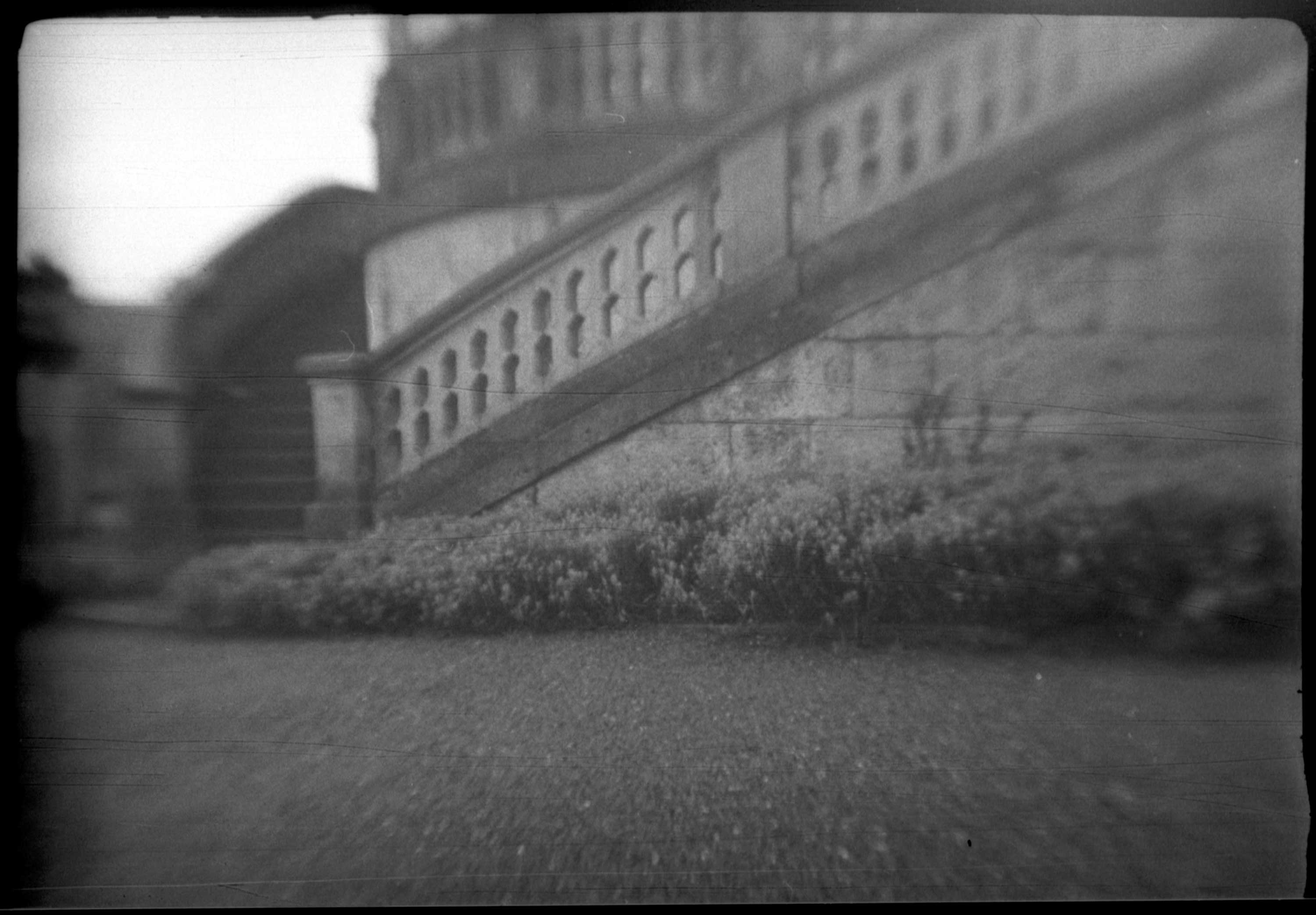 In dieser Größe sieht man auch deutlich die zahlreichen Kratzer, den die ‚Bildbühne‘ in der Emulsion hinterlassen hat und natürlich die üblichen Verunreinigungen vom Filmtrocknen und von Scannen. Man sie aber auch, dass die Kamera ihre Stärken (wenn man das so nennen kann) nur im ‚zentralen Mittelfeld‘ des Bildes hat. Nur dort ist so etwas wie Schärfe erkennbar. Zum Rand hin werden die Bilder sehr unscharf. Das kann meiner Meinung nach auch nicht an der minimalen Fokusdifferenz durch den falsch eingelegten Film liegen. Es scheint auch so, dass die Kamera eher für Nahaufnahmen geeignet ist, als für großräumige Landschaften.
