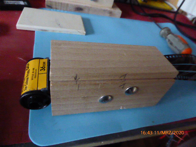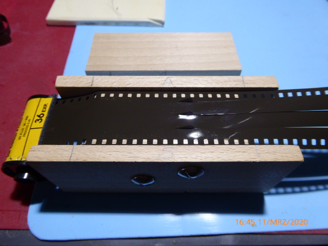 Aus einer 8 mm starken Buche Latte und etwas zuschneiden, entstand ein 8 mm Filmschneider.