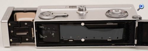 Es sollte auch ohne gehen, wenn die Filmrolle lose in die linke Kammer eingelegt wird. Gespannt wird ja rechts an der Rolle.
