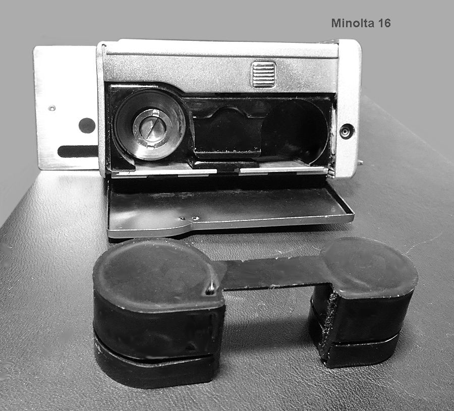 Minolta 16. Die beiden Minolta-Kameras verwendeten die gleichen Film-Patronen.