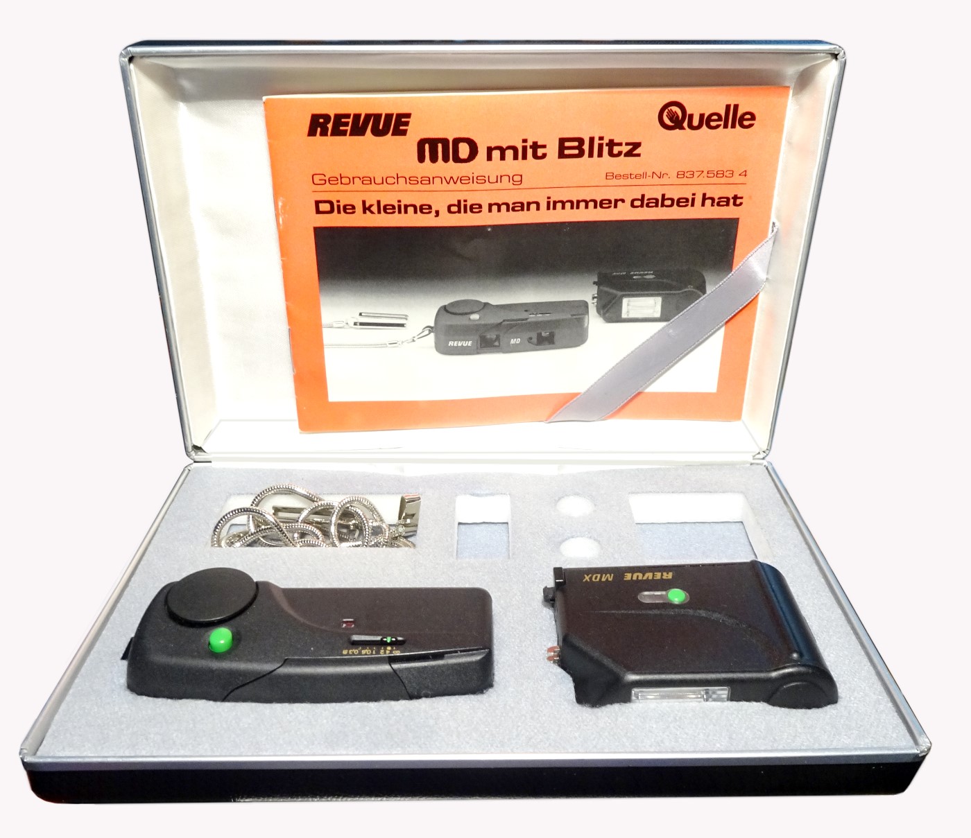 die Quelle Revue MD Kleinstformat-Kamera und der dazu gehörende Elektronenblitz Revue MDX sind für das Minox-Film-Format (wahrscheinlich von Nikoh) Ende der 1990-er Jahre entwickelt worden.