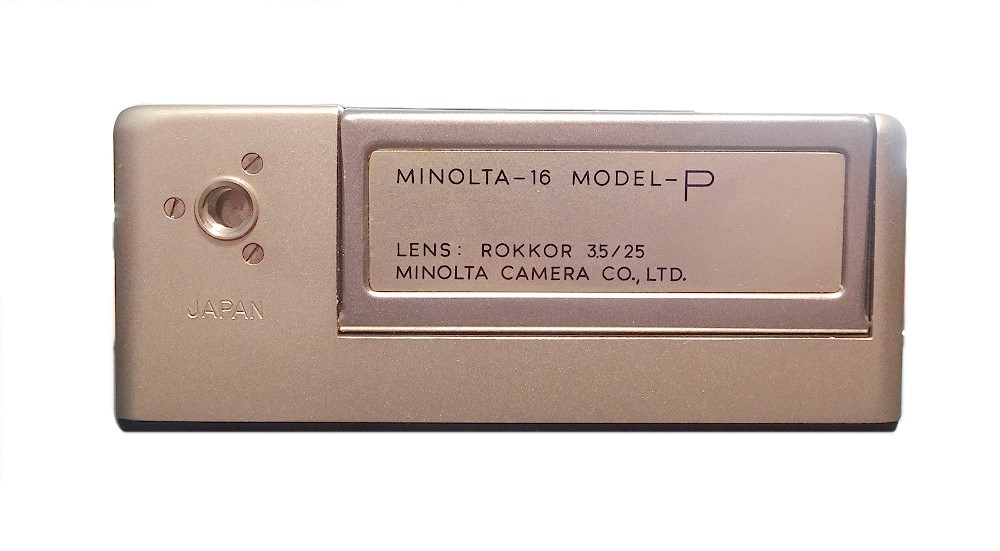 Minolta brachte Anfang der sechziger Jahre neben der Minolta 16 und und Minolta 16 II eine weitere Mini-Kamera-Serie heraus, die mit 16 mm - Film arbeitete: Z.B. Die Minolta 16P. Die 16P ist zwar etwas größer als die 16, das ist aber deshalb so, weil diese Kamera nicht zum Betrieb aufgeklappt werden muß.