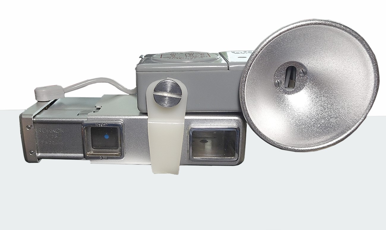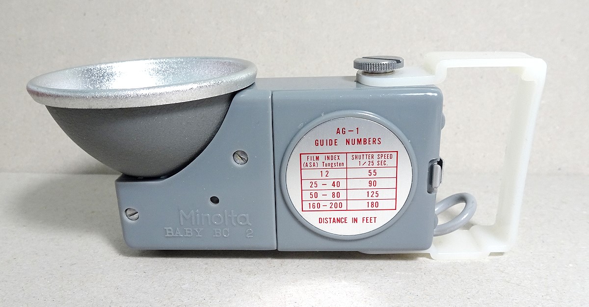 Fotos der Minolta 16 II und des Blitzgerätes Baby BC 2:
