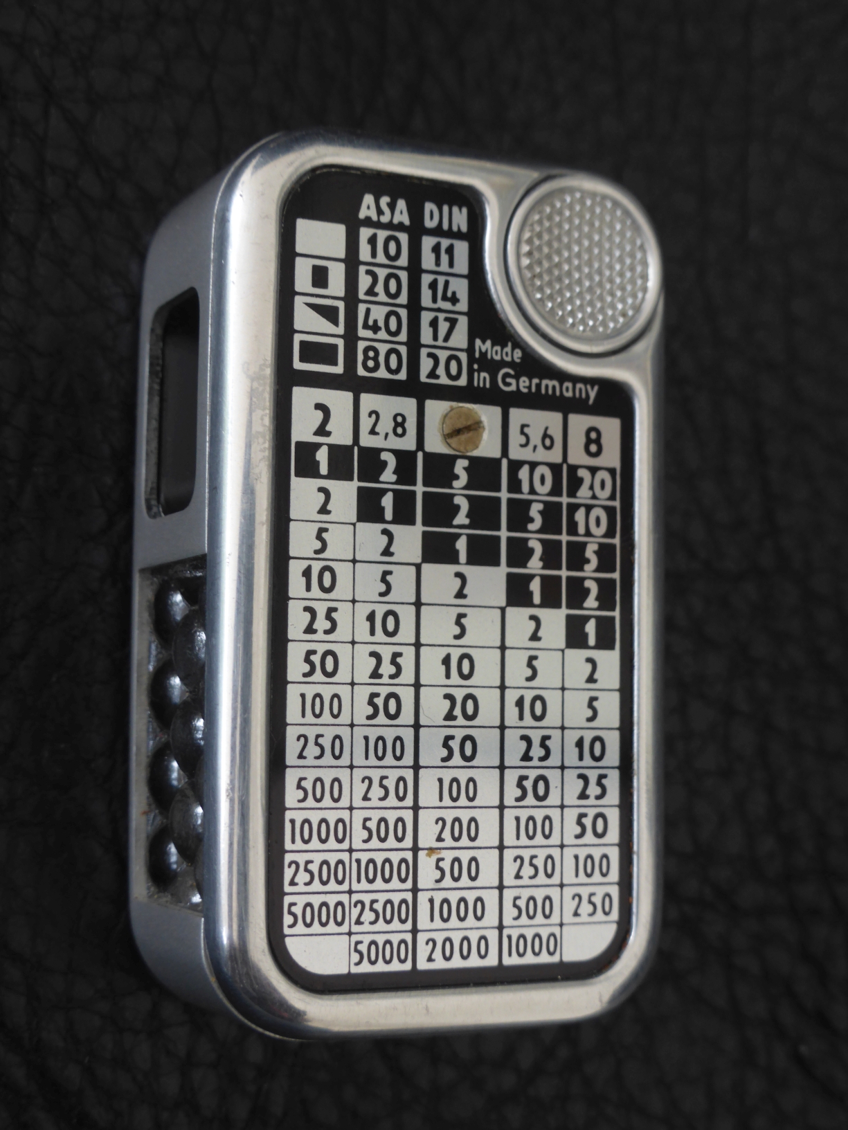 Der Messumfang geht von Lichtwert 2 bis 15 (bei ISO 100). Es sind vier Filmempfindlichkeiten einstellbar, z. B. 10, 20, 40, 80 ASA (es gab unterschiedliche Varianten). Dazu sind die Belichtungszeiten in vier Spalten, die den Filmempfindlichkeiten entsprechen, auf einer Walze dargestellt. Zum Auswählen der benötigten Empfindlichkeit wird die Walze über ein geriffeltes Einstellrad auf der Rückseite gedreht. Um den Belichtungsmesser auch mit anderen Kameras nutzen zu können, ist auf der Rückseite eine Tabelle angebracht, mit der man den Messwert für die Blenden 2, 2.8, 5.6 und 8 ablesen kann (in der Bedienungsanleitung wird zusätzlich eine Tabelle für die Blenden 1, 11, 16 22 und 32 zur Verfügung gestellt):