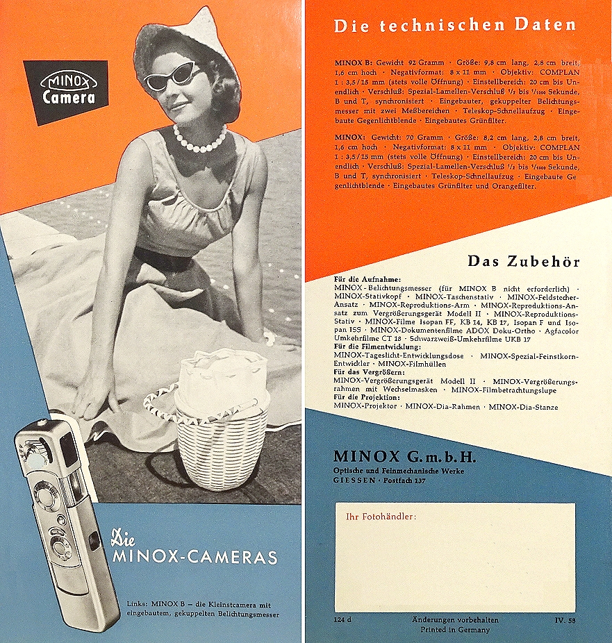 Das Lesen der Innenseiten machen Lust auf Erwerb einer Minox-Kamera. Interessant dabei auch (1958 kam die Minox B auf den Markt), die Unterscheidung der beiden gezeigten Modelle "Minox" und "Minox B".