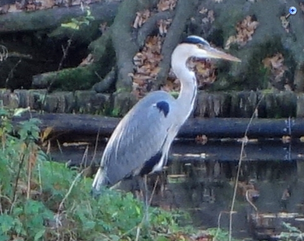Hier besagter Reiher mit 3,8-facher optischer und zusätzlicher 2-facher digitaler Vergrößerung der Kamera.