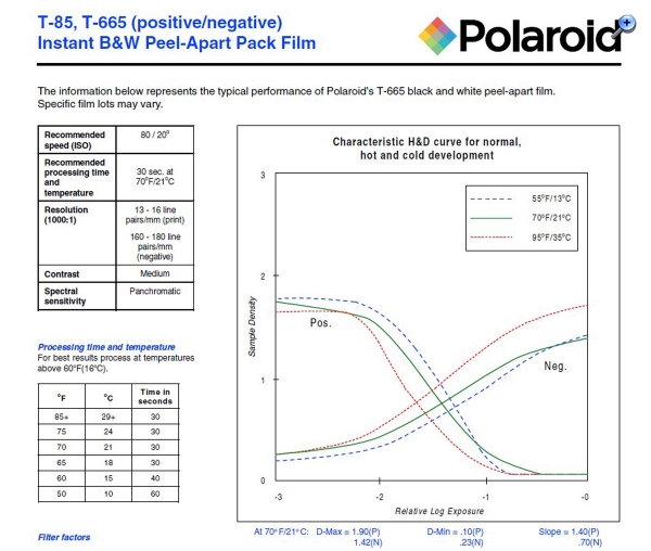 Dazu aus dem Polaroid P/N 55 Datenblatt: