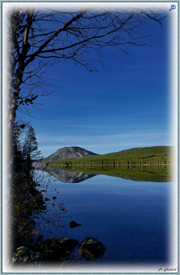 Ein Bild von heute, ein paar Stunden alt. Hier spiegelt sich der Funäsdalsberg im Funäsdalssee. Fast sämtliche Blätter haben schon die Bäume verlassen. In der Ferne, unten am Fuße des Berges die Ortschaft Funäsdalen. Links unten vor dem Berg, am Ufer des Sees liegt auch mein derzeitiger Arbeitsplatz.