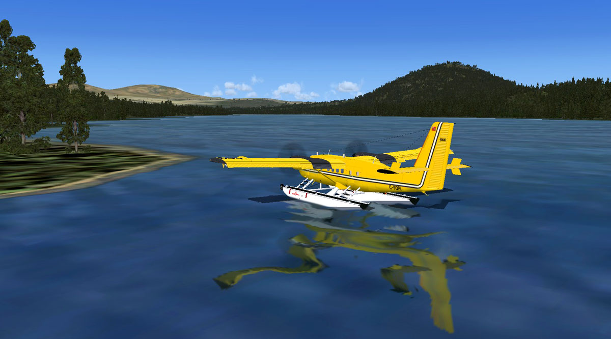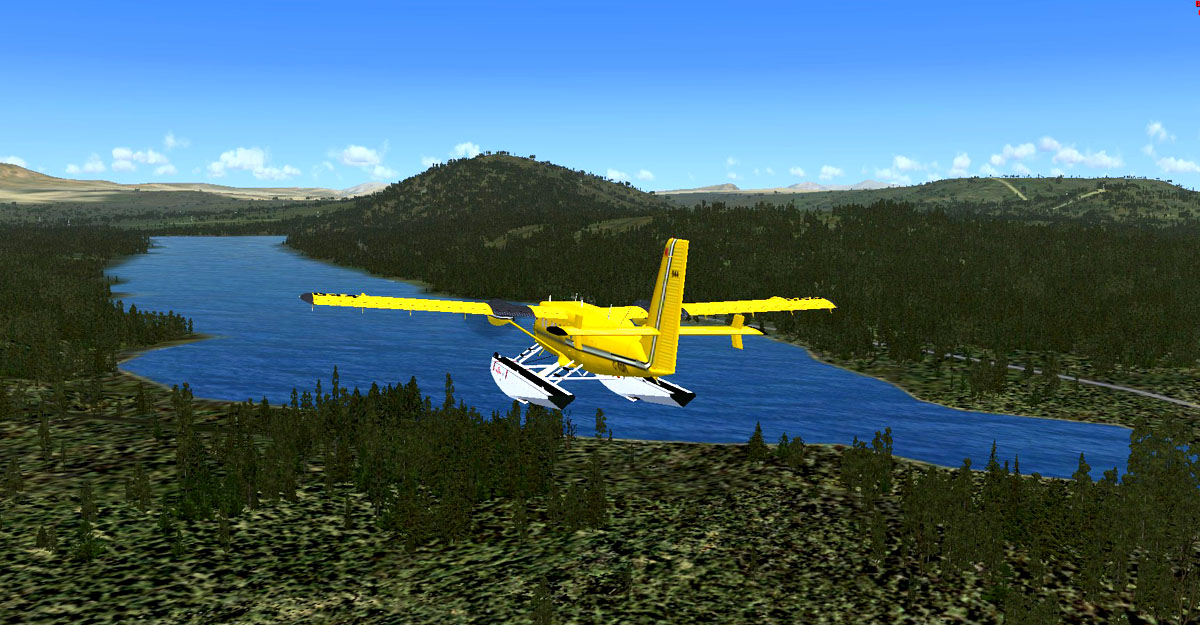 Zwei Screenshots aus dem Simulator: Anflug im FSX auf Funäsdalen (62° 32 31" N, 12°32 53" E)