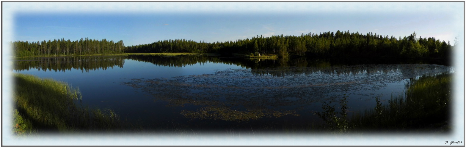 Hier mal eine Panorama Aufnahme, zusammengesetzt mit Photoshop CS5 (gesticht) aus vier Einzelbildern. Ihr seht hier eine meiner Favoritenstellen zum Kraft tanken, einen idyllischen Waldsee in meiner näheren Umgebung.