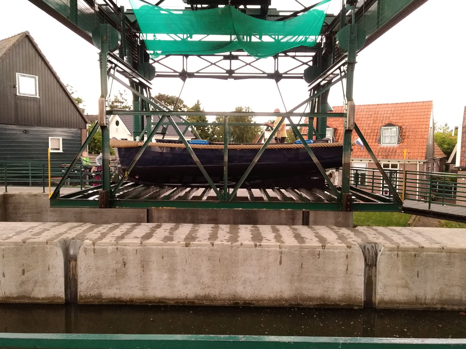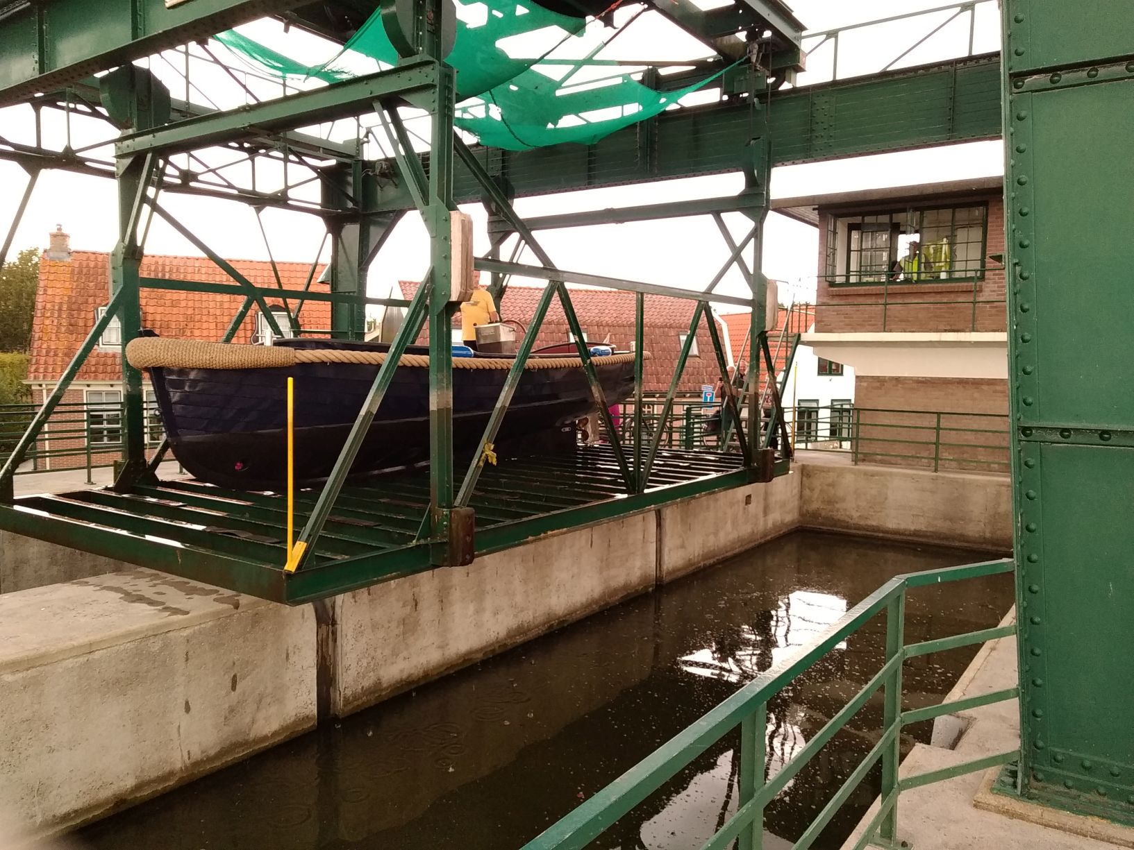 heute ist mir das kleinste Schiffshebewerk, das ich kenne, vor die Linse gekommen. Na ja, eher Bootshebewerk. Es befindet sich in Broekerhaven, Niederlande und hebt Boote vom Binnenkanal auf das Nieveau des Ijsselmeers (und umgekehrt).