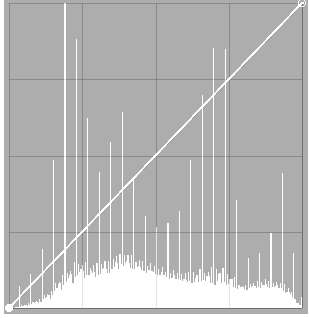 Das sollte unter der Diagonale eigentlich eine Kurve mit unendlich vielen Tonwerten sein, nicht nur 26 Stufen. Alternativ mit dem Windows-Programm Irfanview unter wine (kostnix, ist für Korrekturen von Helligkeit, geradestellen usw. usf. zu empfehlen, Menü Bild/Histogramm):