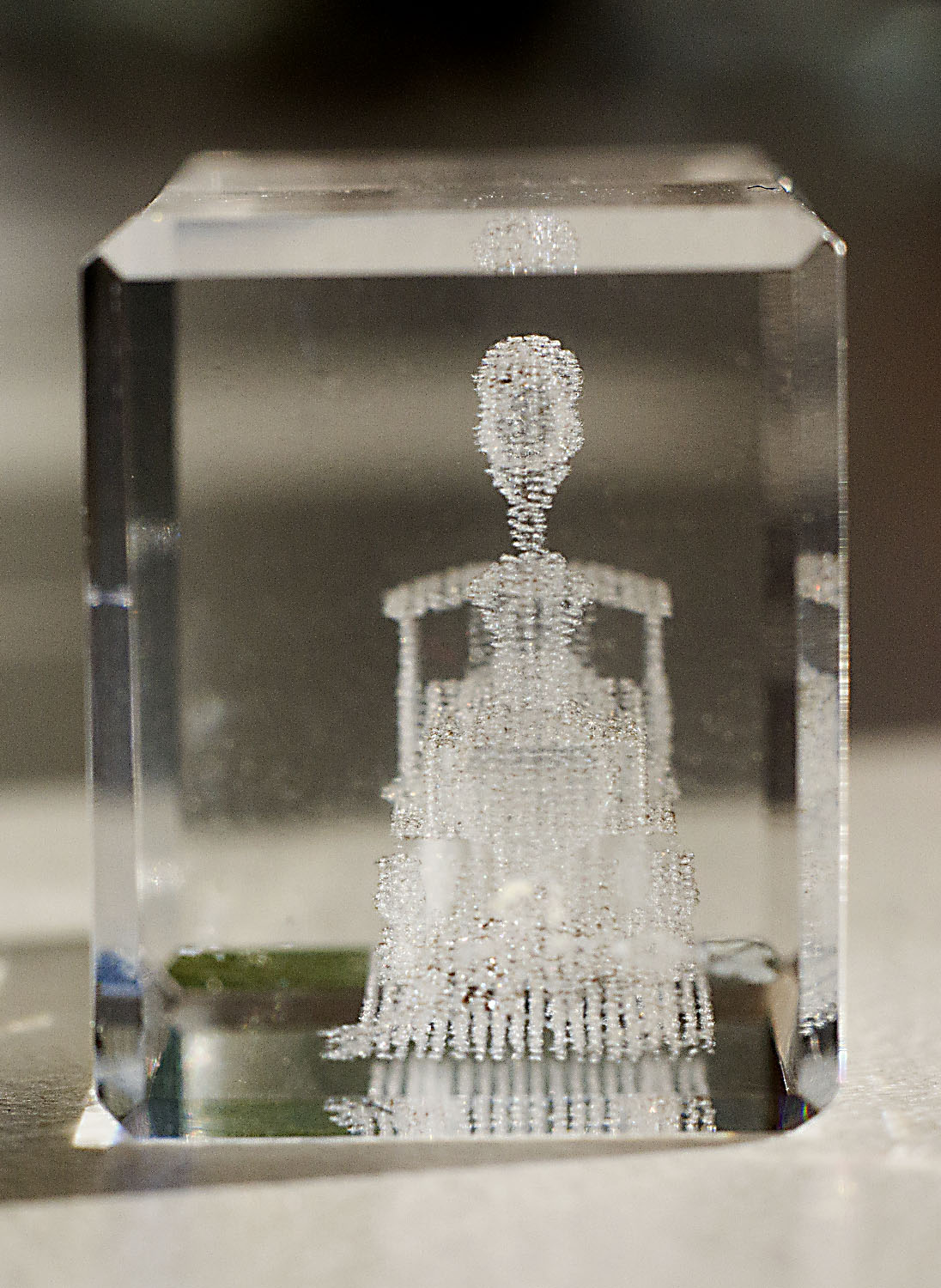 vor über 15 Jahren hatte ich mal für meine Welt-der-alten-Radios-WEB-Seite einen dreidimensonalen Laser Scan eines Radios herstellen lassen, dass dann in einen Glasblock "gebrannt" wurde. Das Radio kann darin von 3 Seiten betrachtet werden.